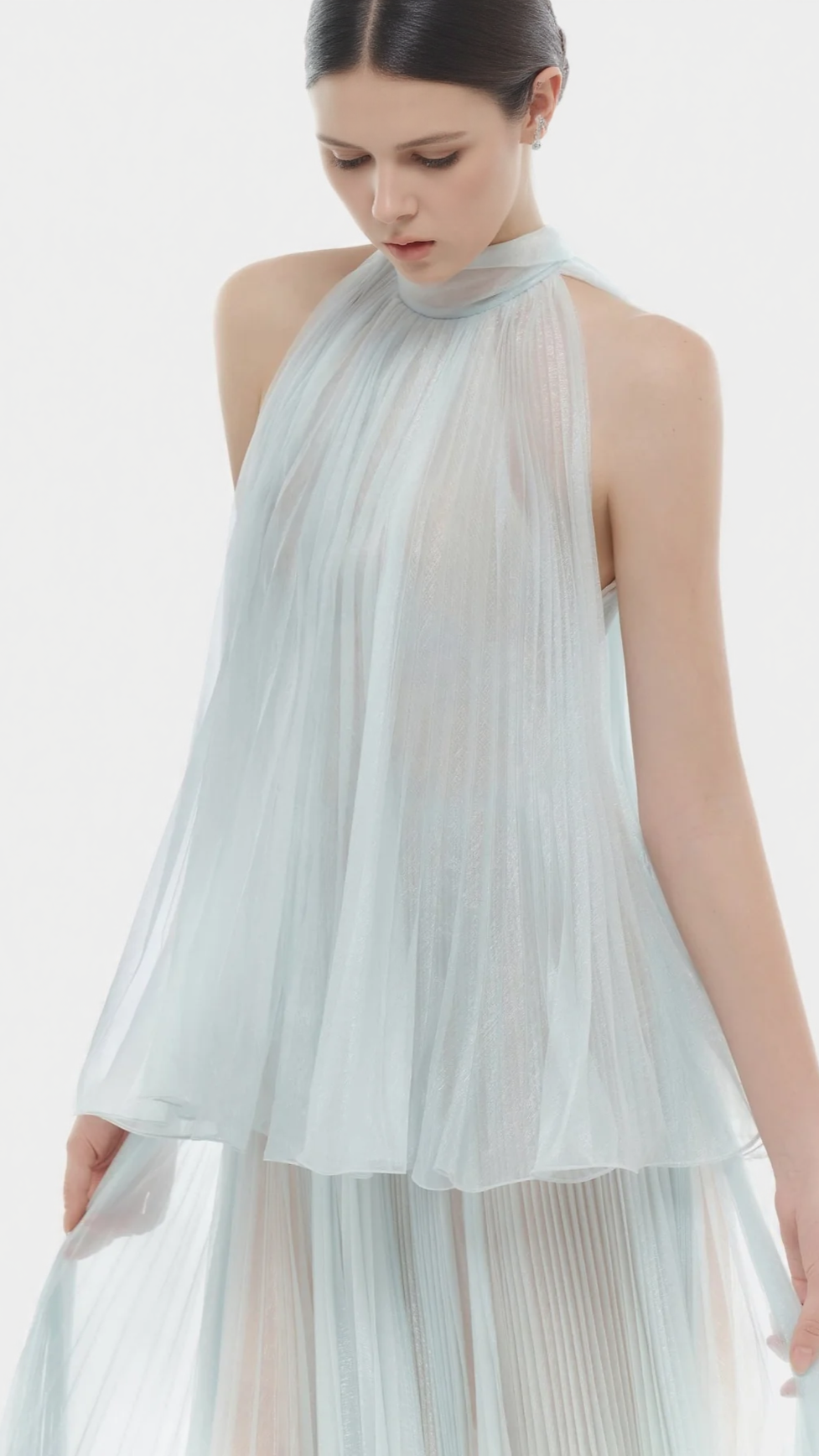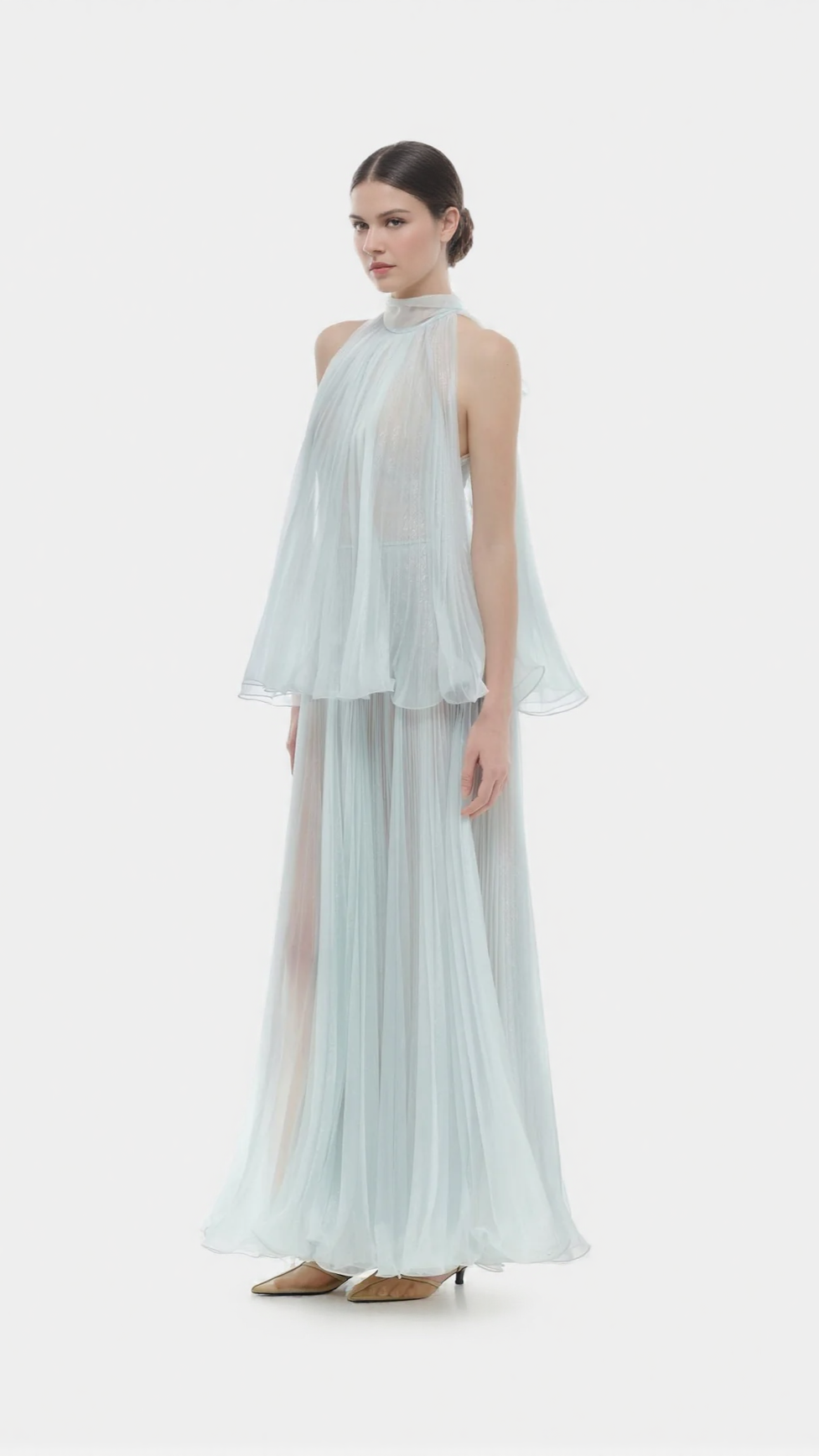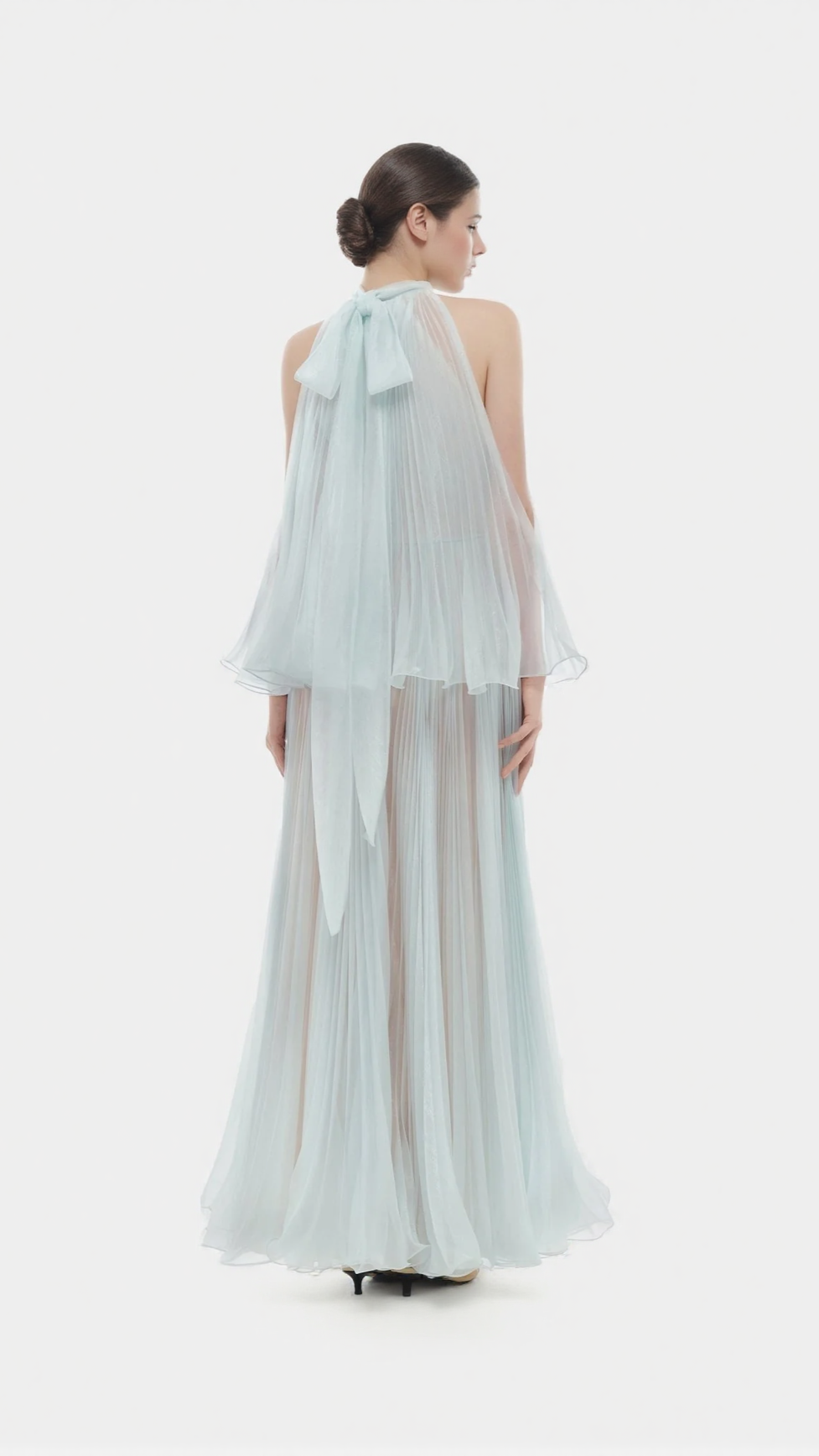 BELINDA MINT PLEATED TULLE SLEEVELESS MAXI DRESS