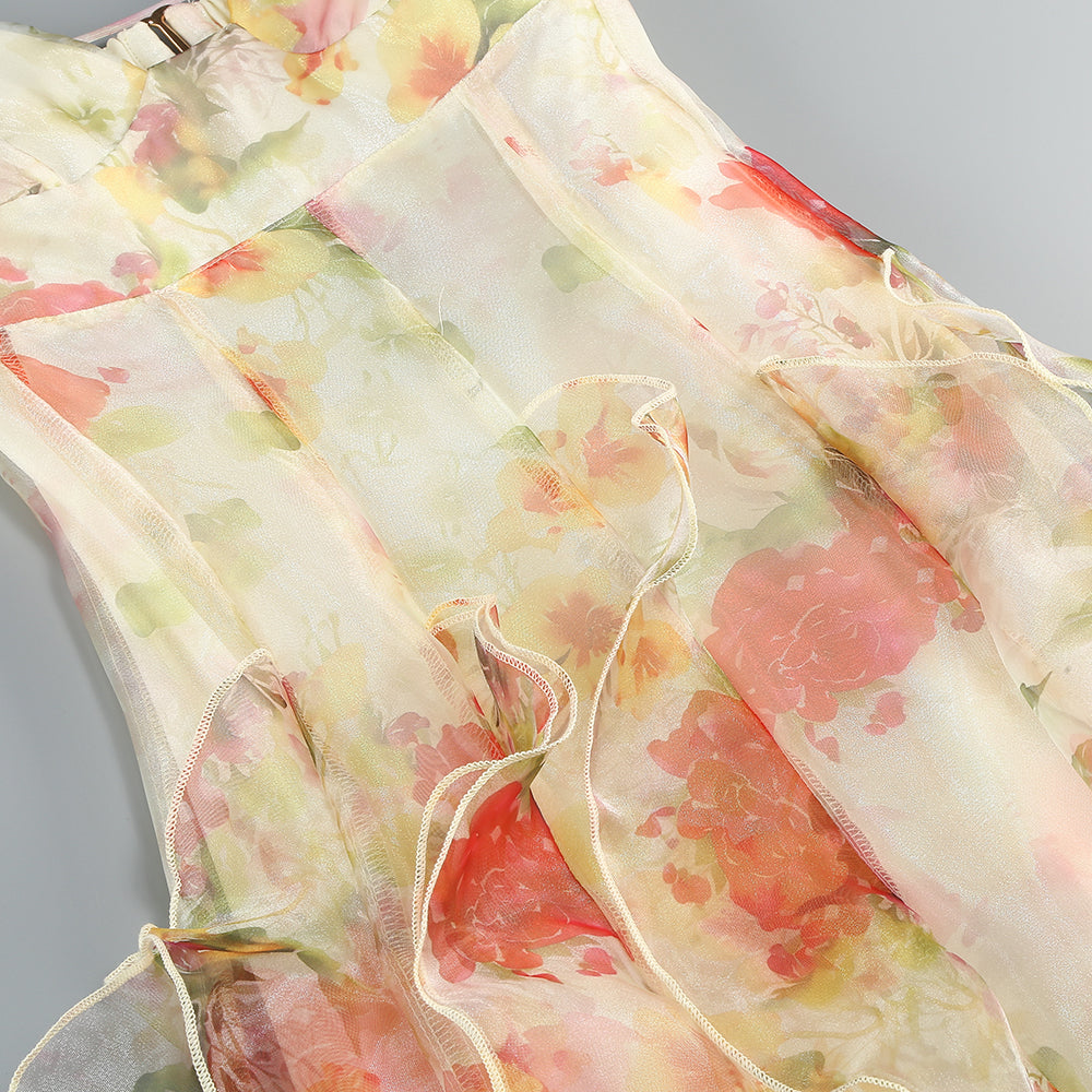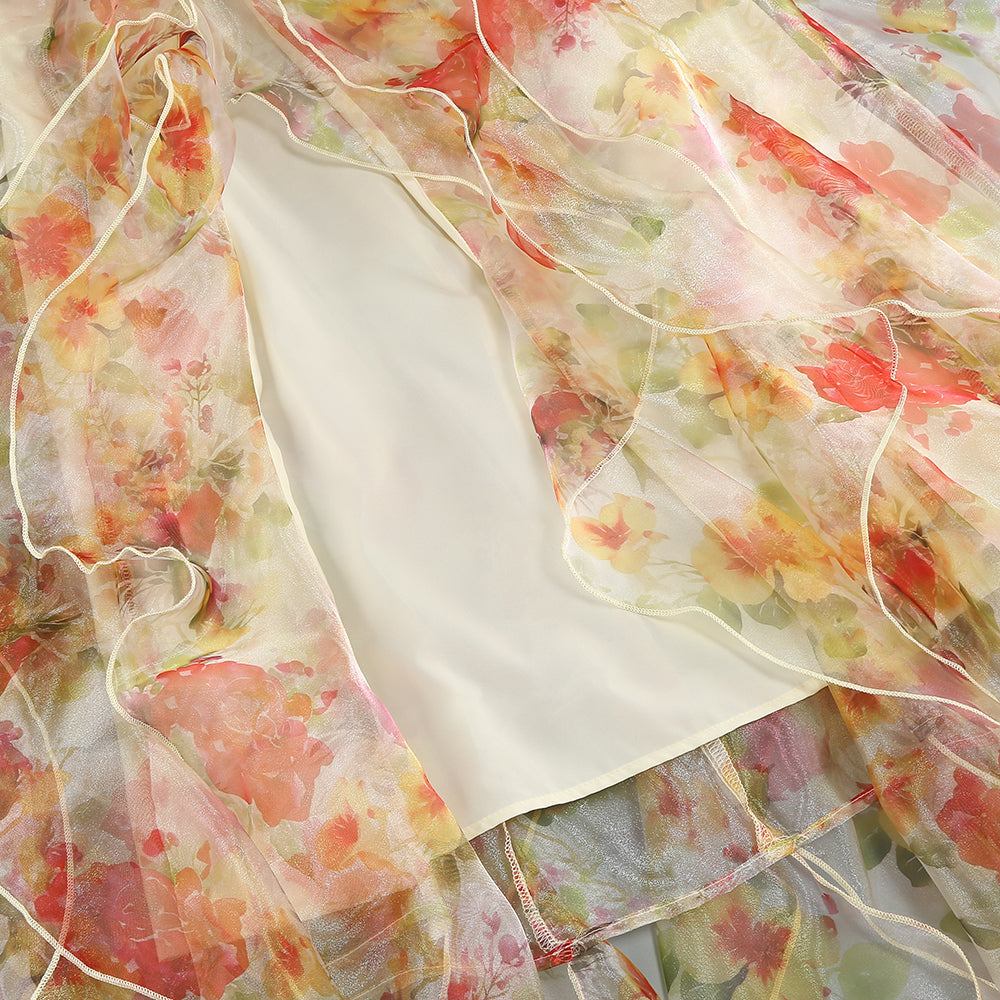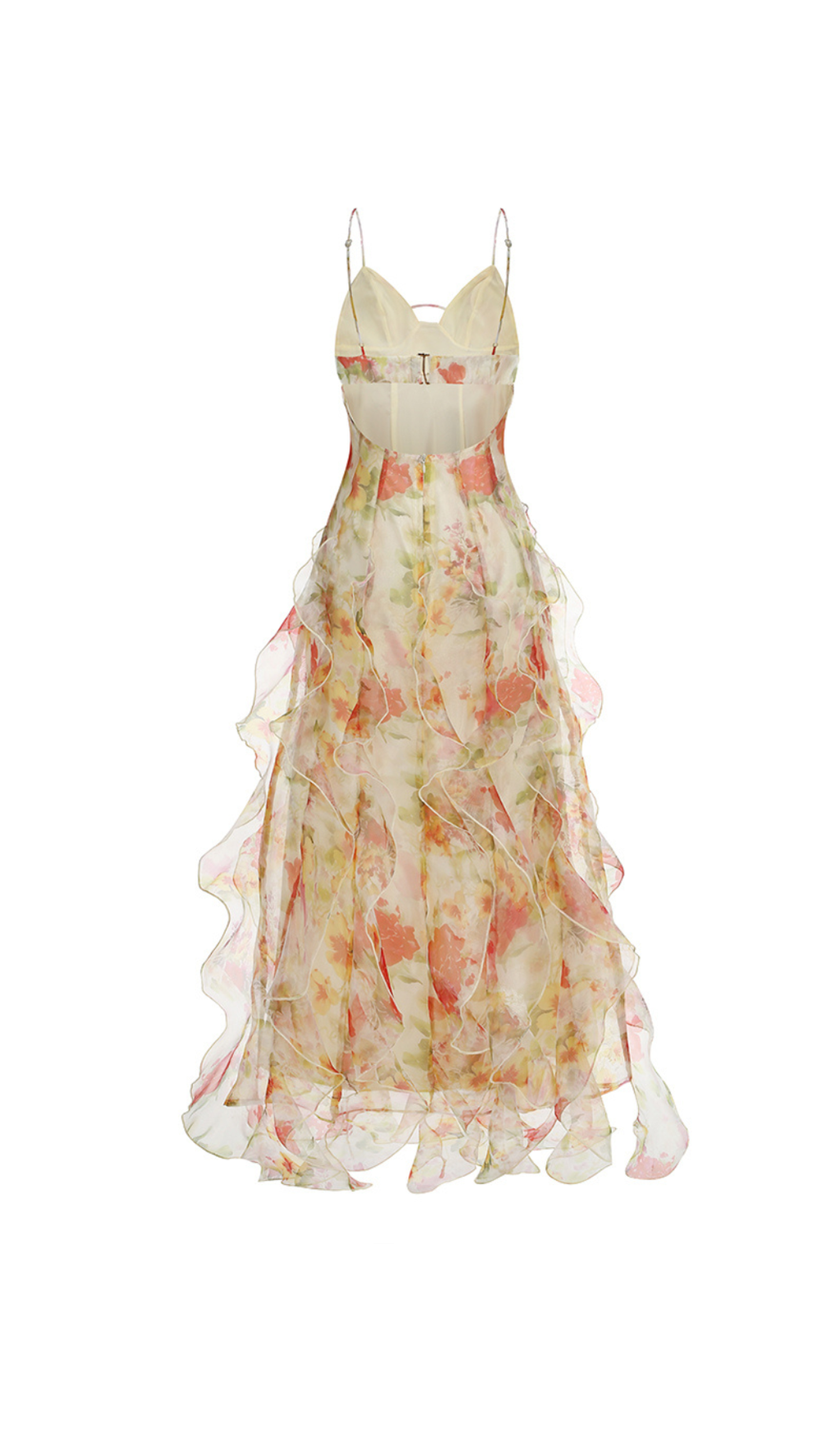 BELINDA YELLOW FLORAL VERTICAL RUFFLE TRIM MAXI DRESS