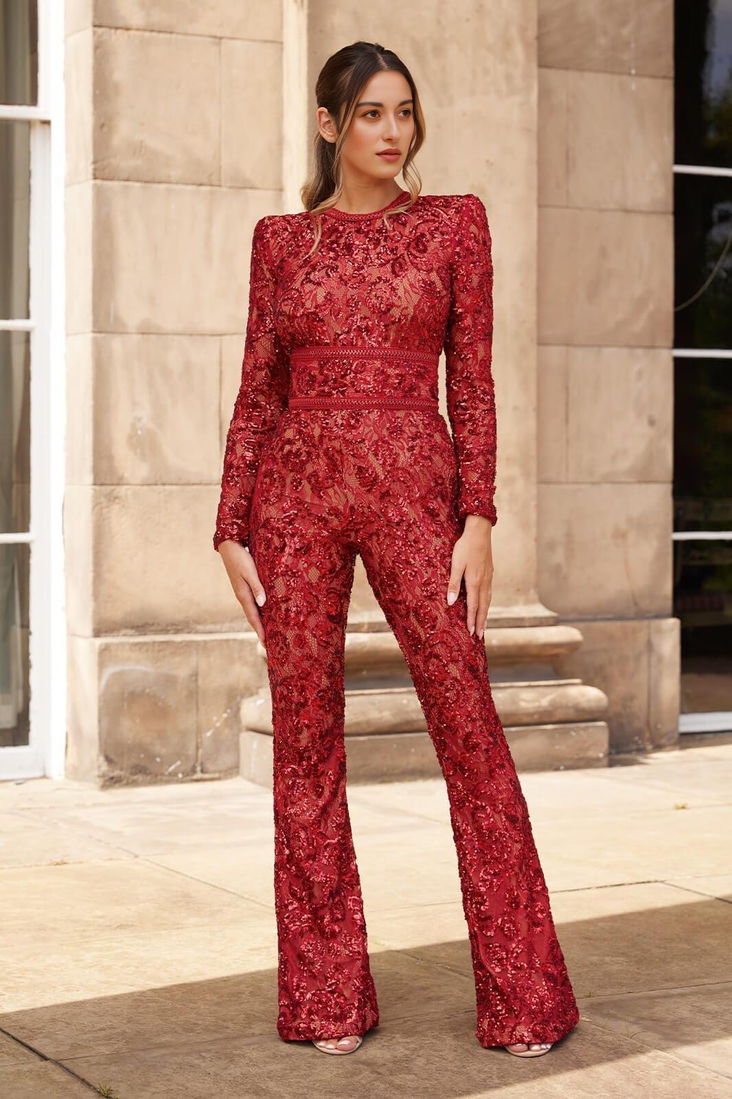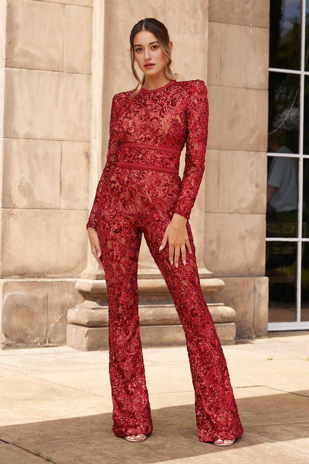 Embellished Lace Red Jumpsuit