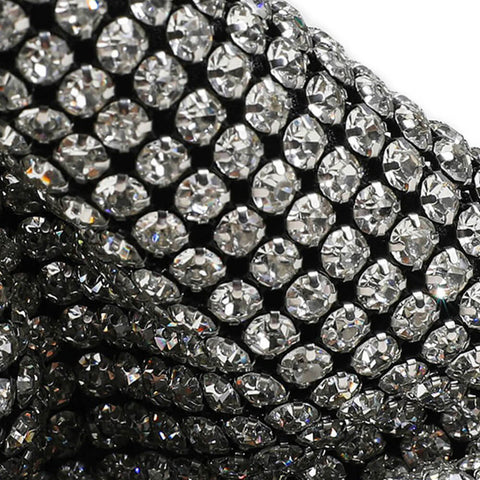 The Bellatrix Crystal Bucket Bag In Silver inspired by starry nights! It is a stylish handmade medium-size bucket handbag. Hand-crafted in high-quality rhinestone crystals, it completes an elegant yet chic look that will turn heads and make you the party star. The shiny handbag comes with a detachable silver chain strap, allowing you to wear it hands-free or as a clutch.
