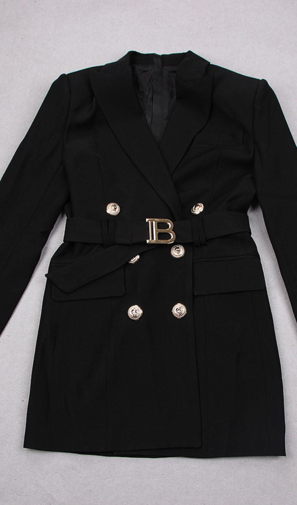 BELTED DOUBLE-BREASTED BLACK SUIT
