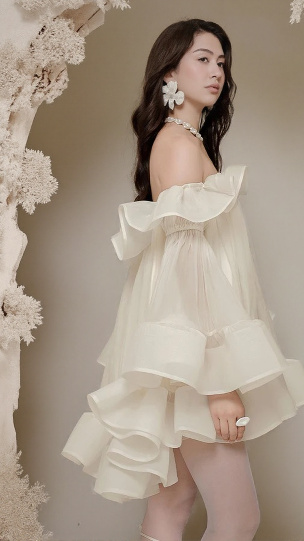 BERNICE RUFFLE LAYER CRINKLE CHIFFON MINI DRESS IN WHITE