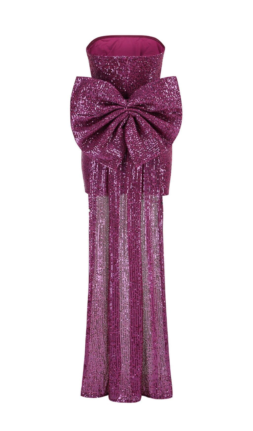 BERRY STRAPLESS BOW MINI DRESS
