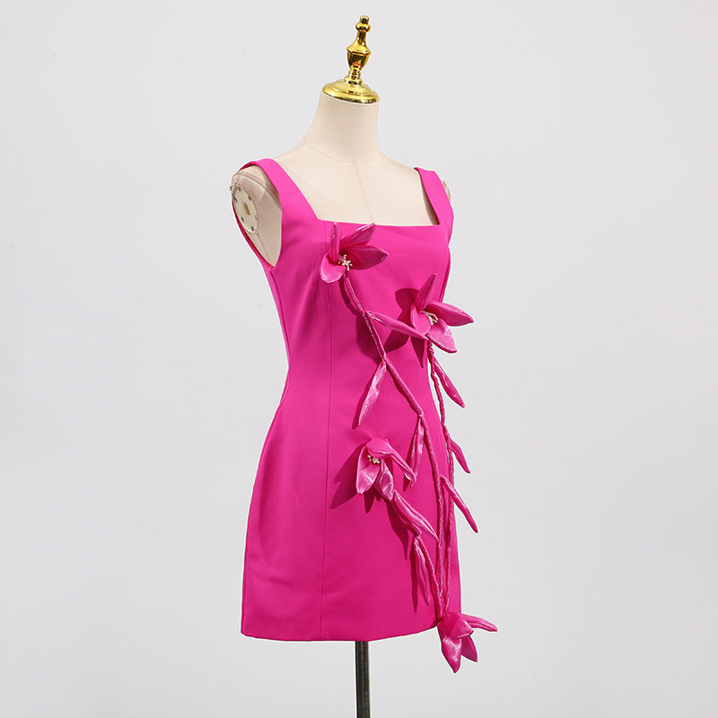 Bethany 3d flower sleeveless Mini Dress In Purple