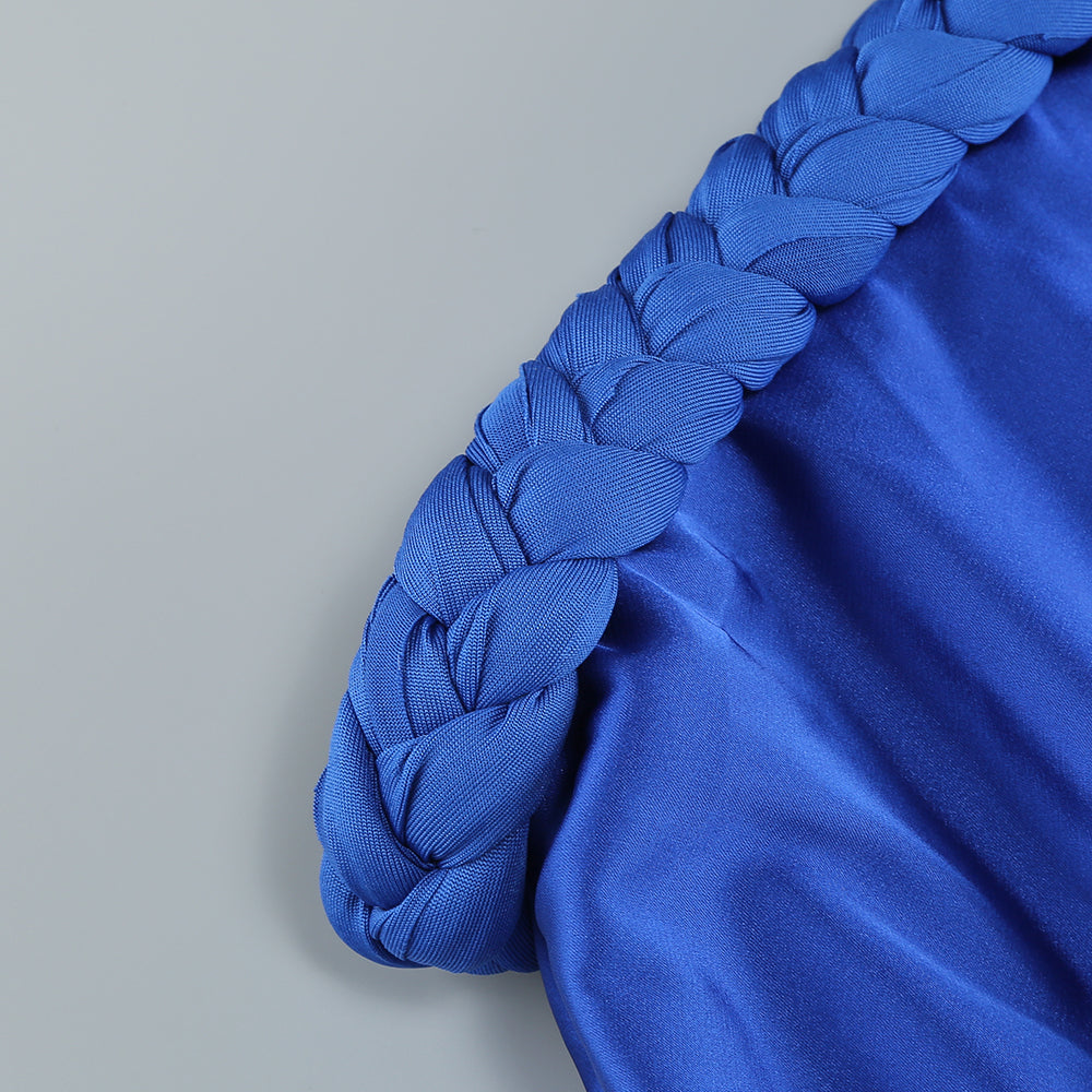 Delicately braided and adorned with exquisite embellishments, this gown exudes elegance and sophistication. The ruched details create a flattering silhouette, making you feel like a work of art. Perfect for a special occasion or a gala event.