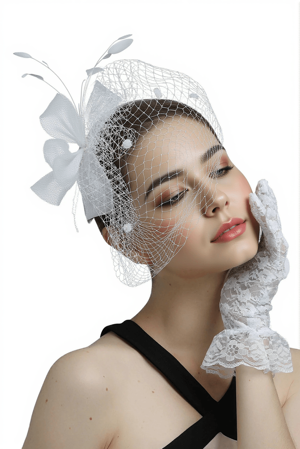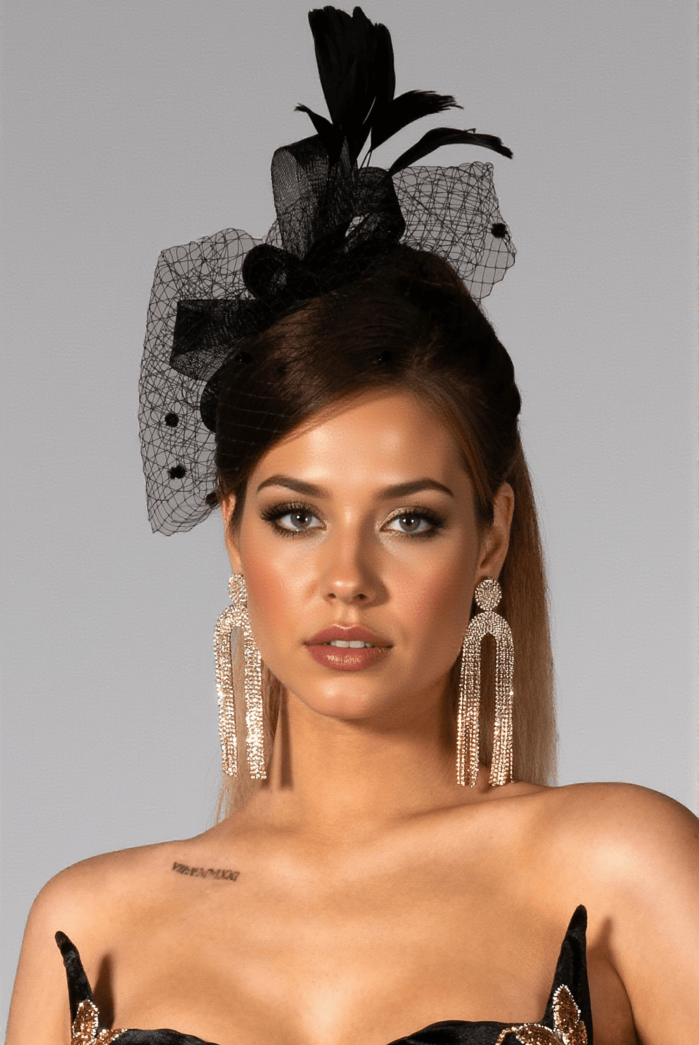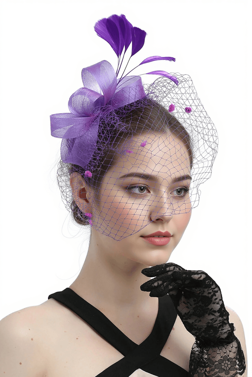 The model in our photos showcases how effortlessly this hair accessory can complement a variety of styles. From updos to loose waves, the Bethany Mesh Hairband adds an elegant touch.