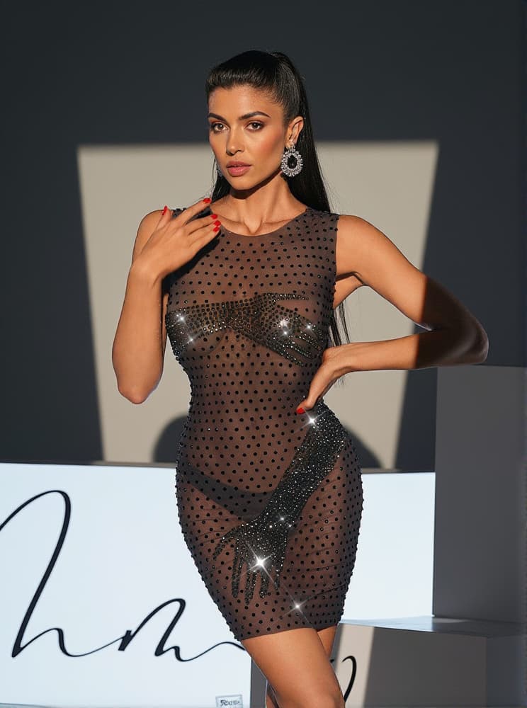 Introducing the Billy Sleeveless Hands Illusion Mesh Dress. Made with high-quality materials, this dress features a unique hands illusion mesh design that adds an extra touch of elegance. With a flattering sleeveless cut, it's the perfect dress for any special occasion or night out. Upgrade your style game with this must-have addition to your wardrobe.