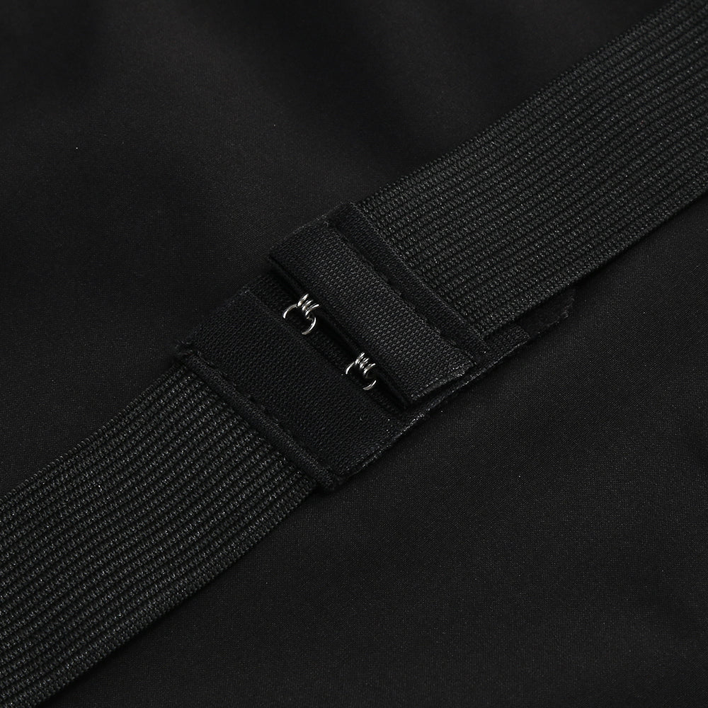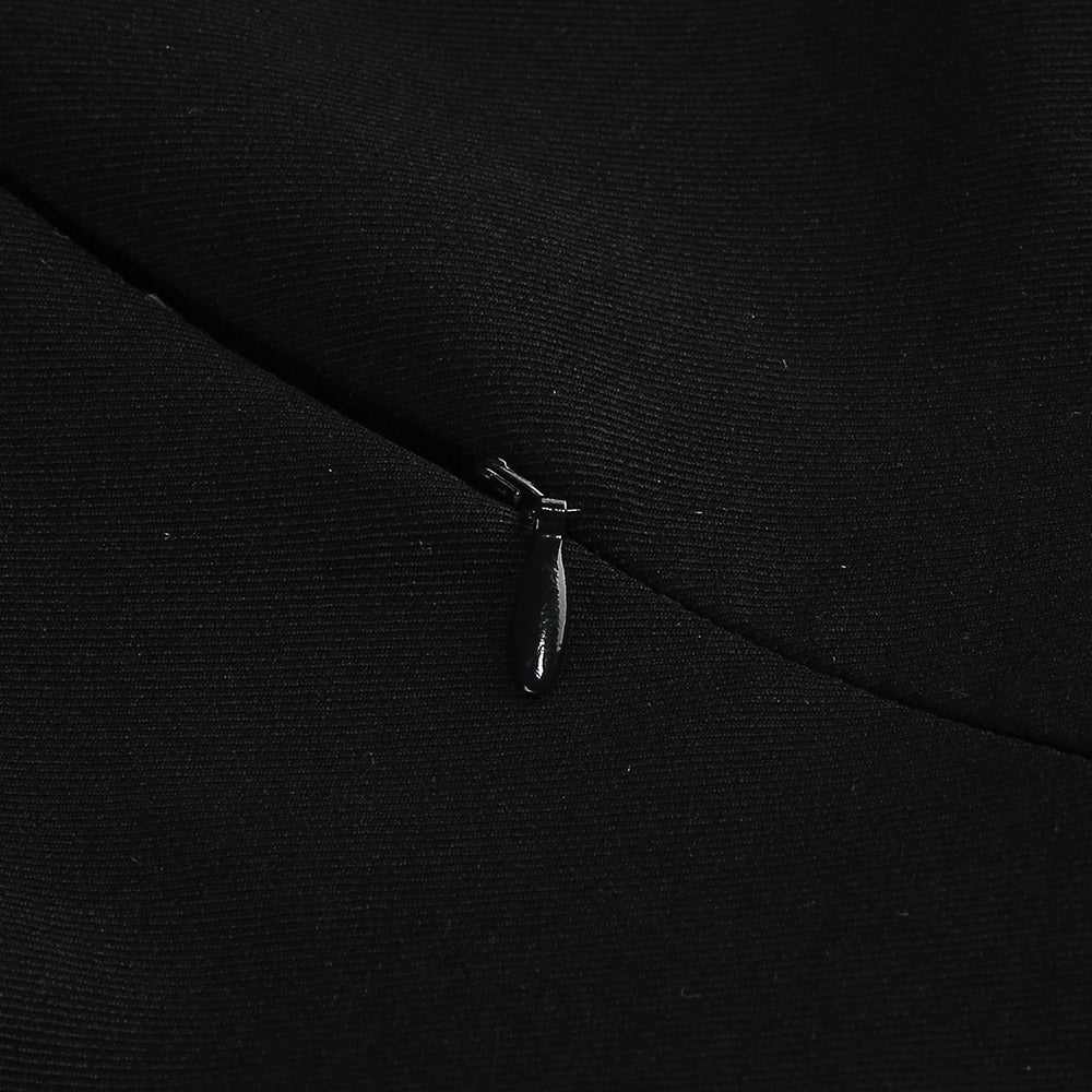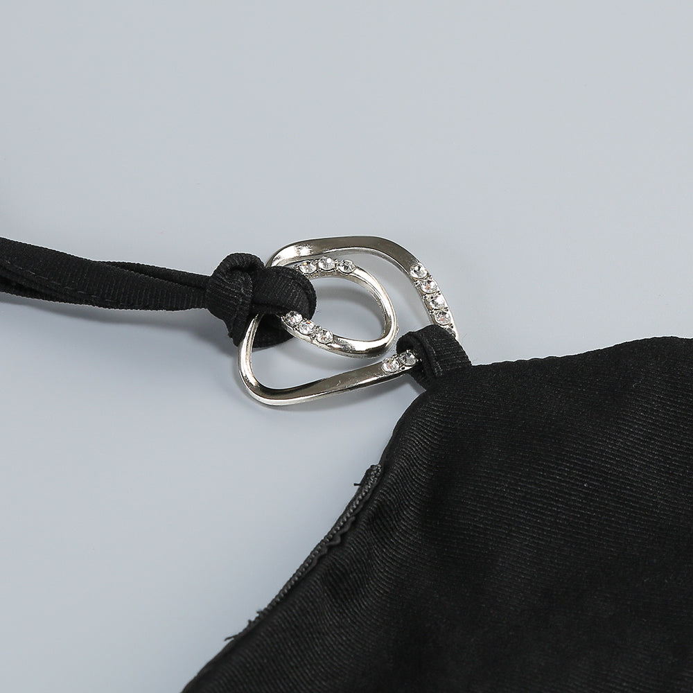 This is a uniquely designed dress. The upper part is a black halter - neck style. The halter neck is adorned with a metal ring buckle, adding a touch of sophistication. The bodice is embellished with pearls, highlighting an elegant charm. It also clings to the body, showcasing the wearer's figure.
