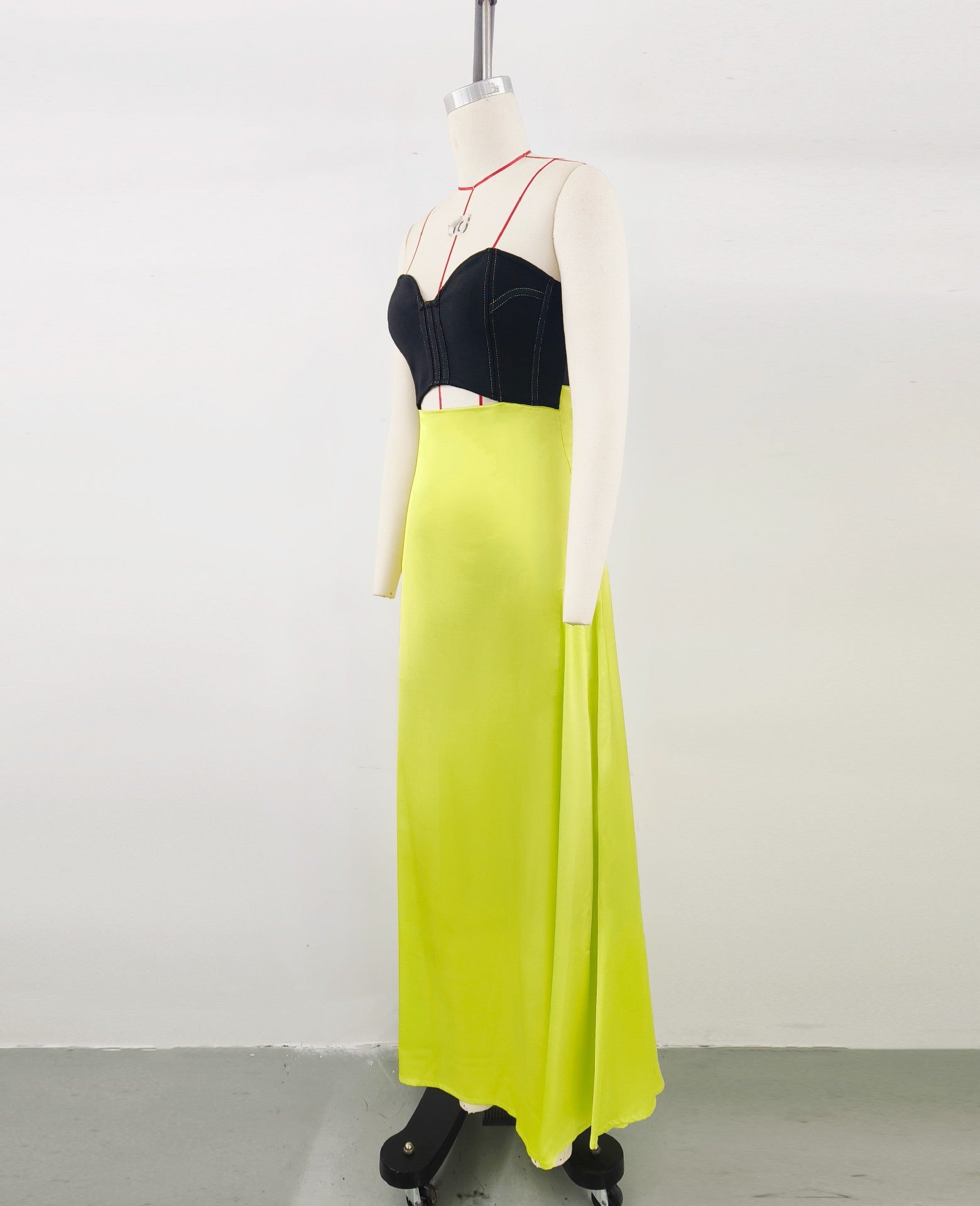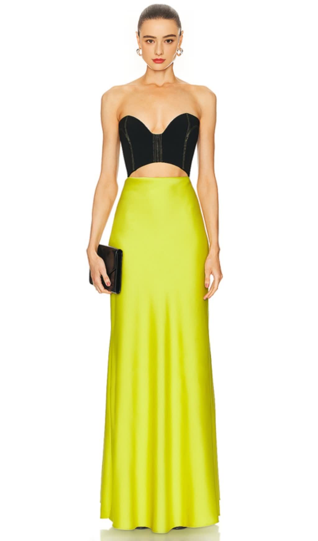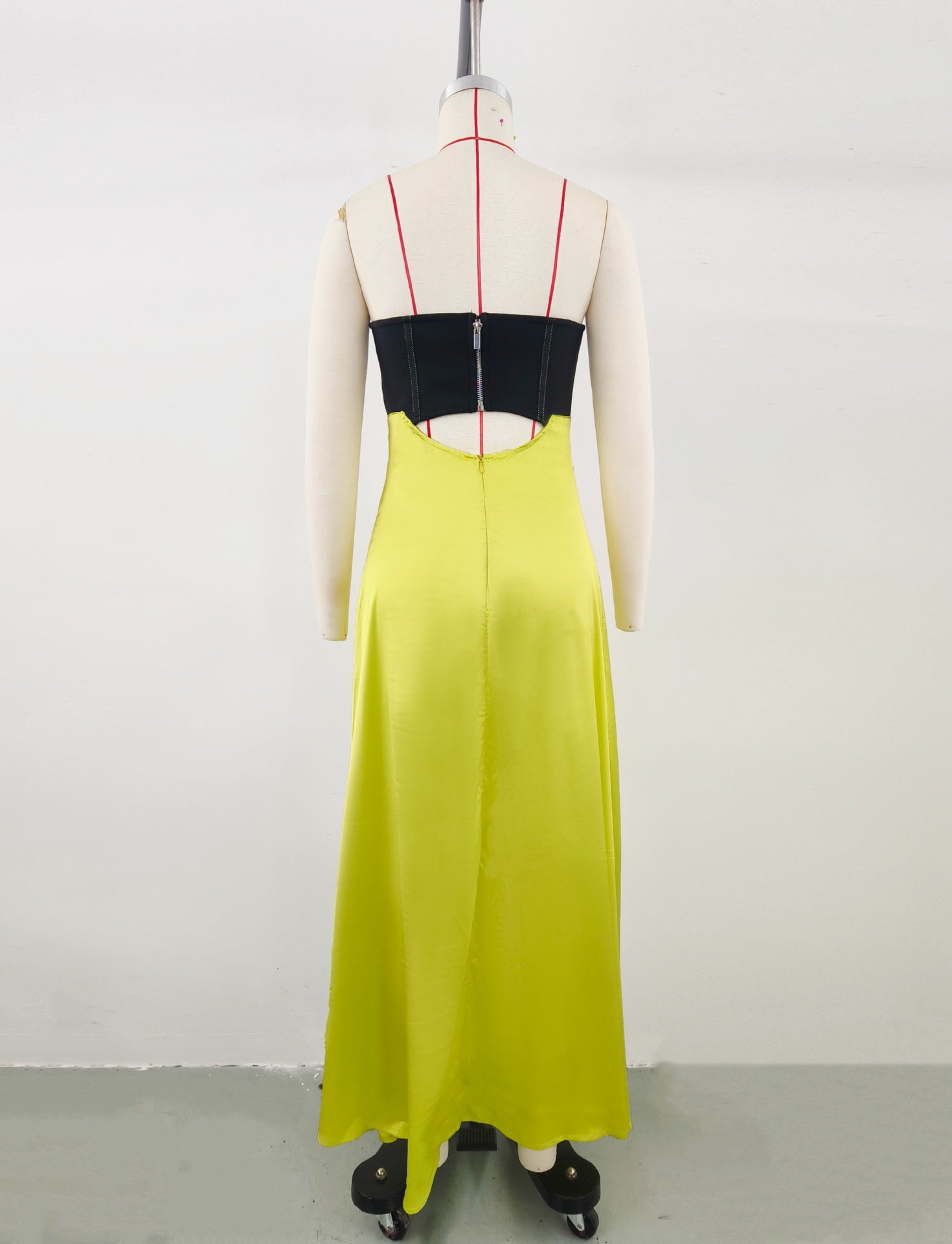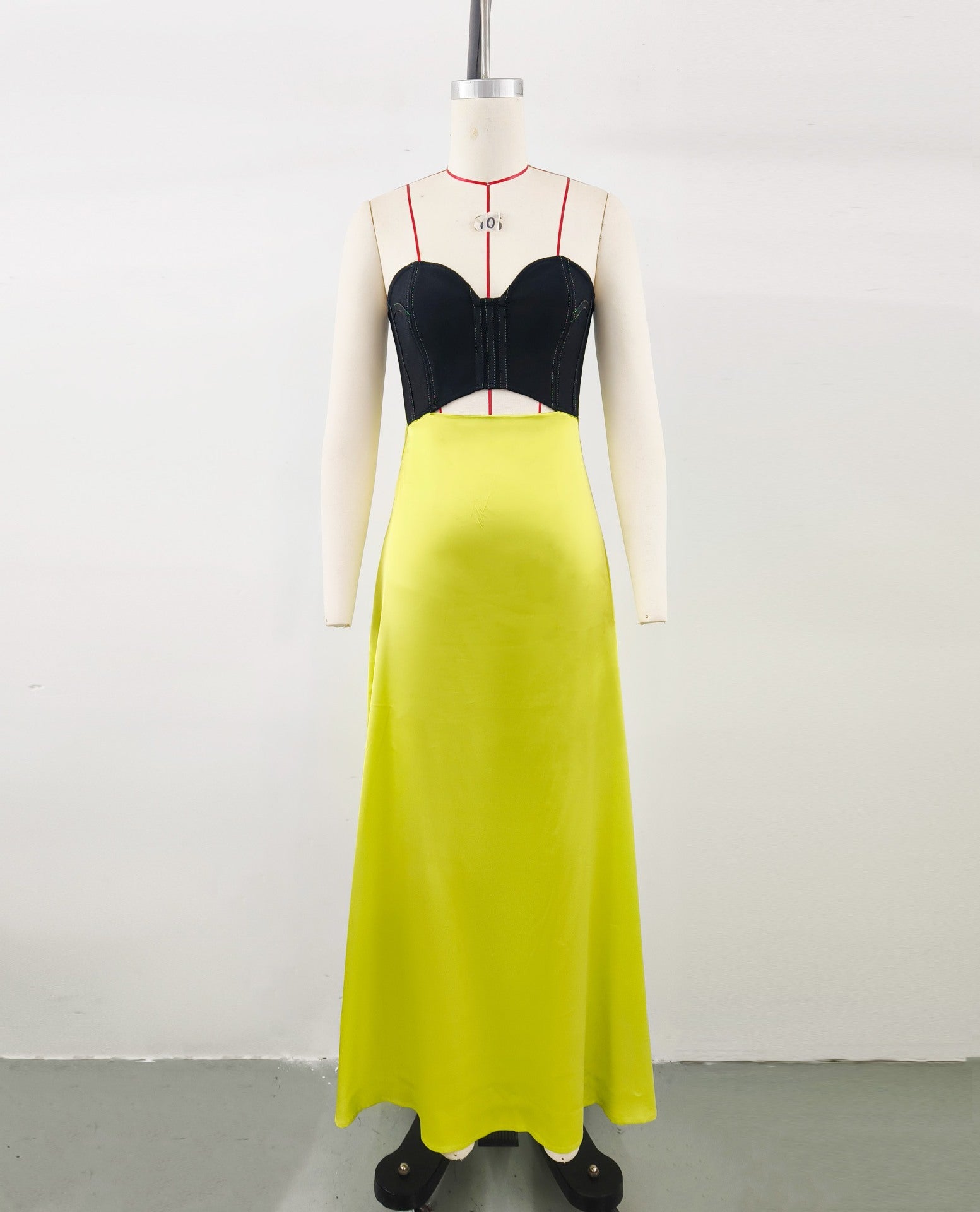 BLACK AND YELLOW COLOR - BLOCKED MAXI DRESS