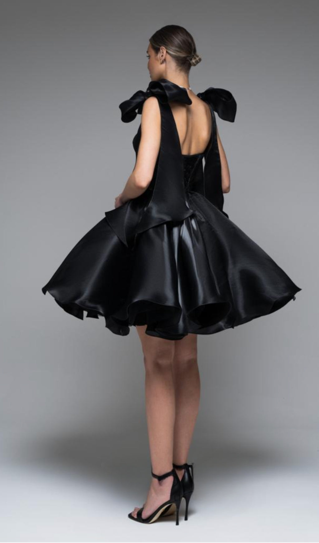 BLACK BOW PUFFY MINI DRESS