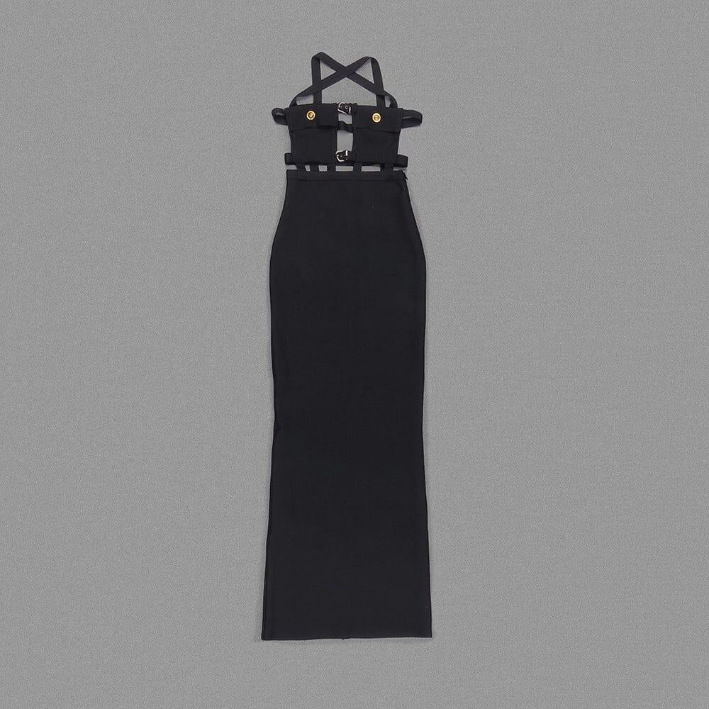BLACK BUSTIER CUT OUT BANDAGE GOWN