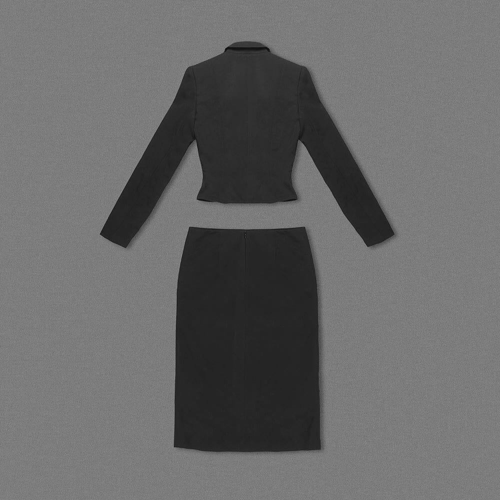 BLACK BUTTON-DOWN SUIT DRESS TWO-PIECE SET