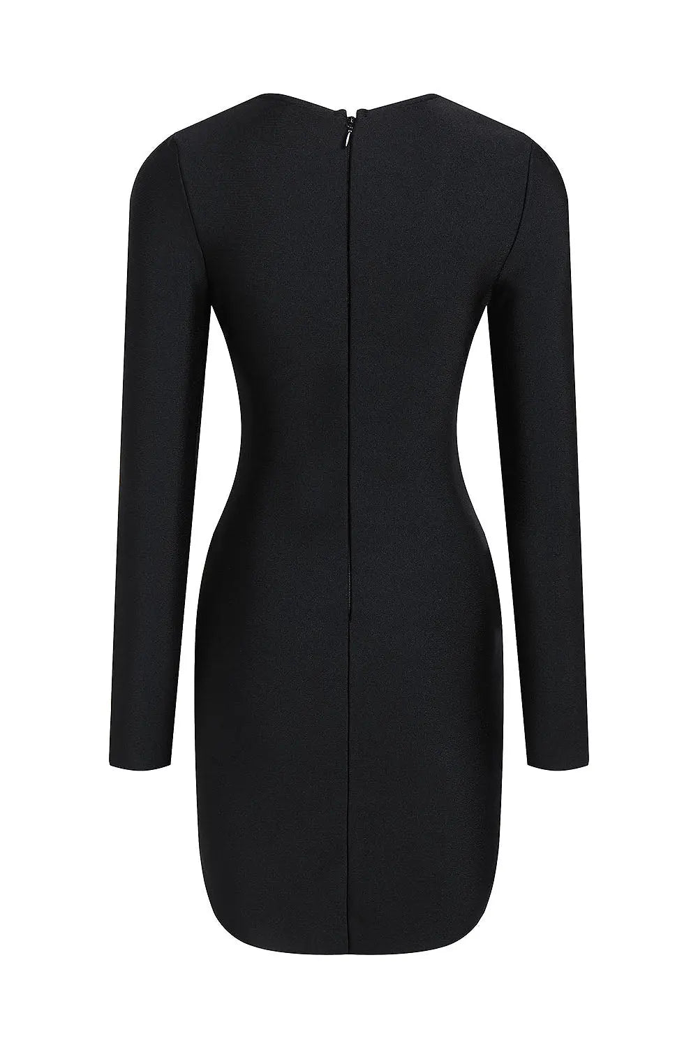 BLACK CORSET DETAIL LONG SLEEVE BANDAGE MINI DRESS