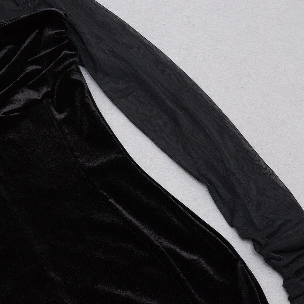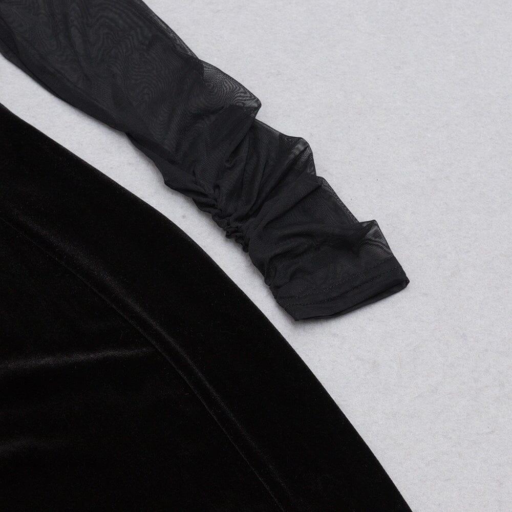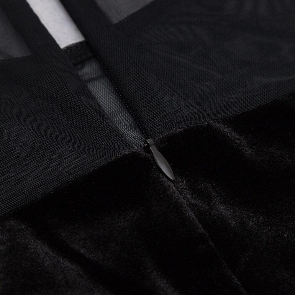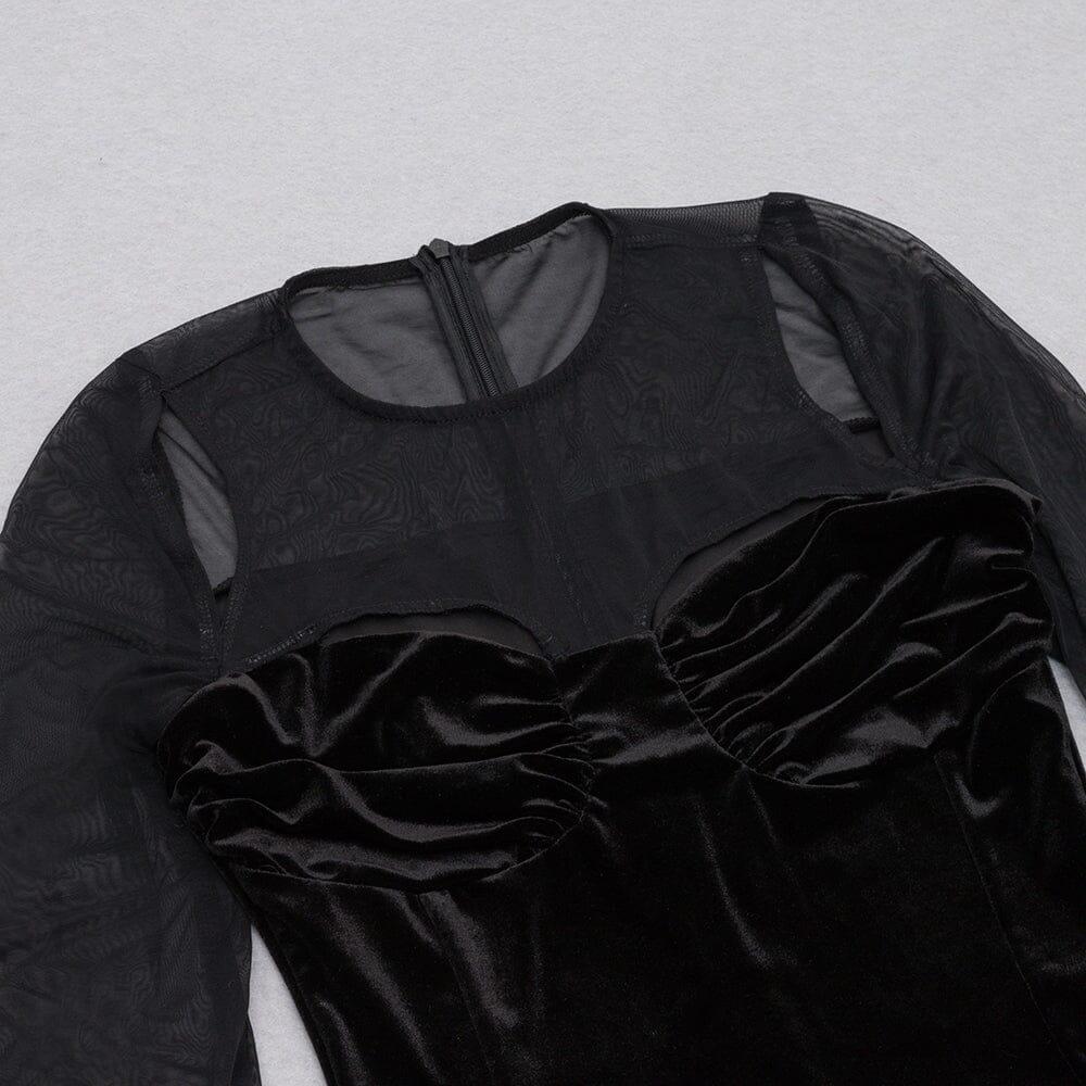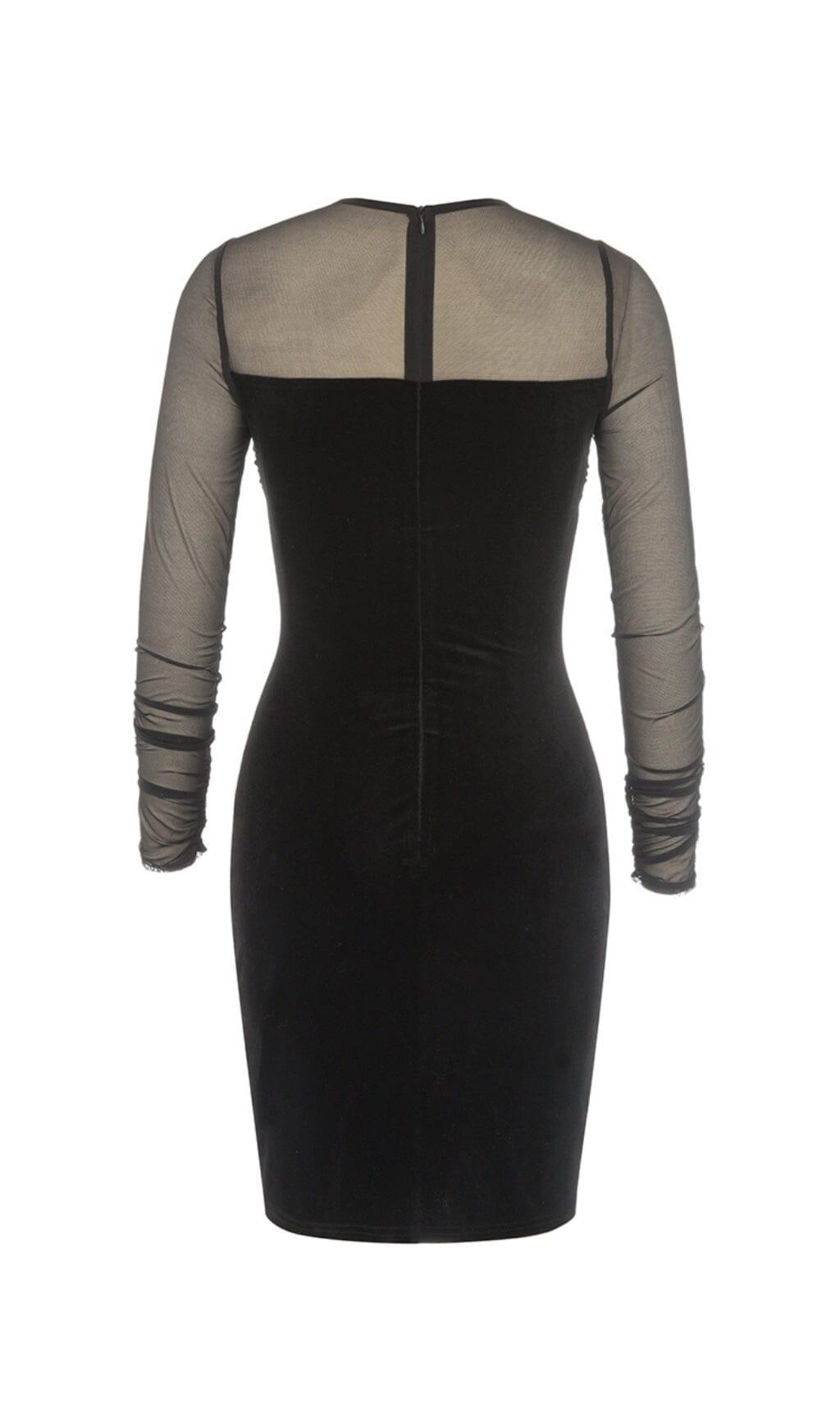 BLACK CREWNECK MESH STITCHED VELVET DRESS