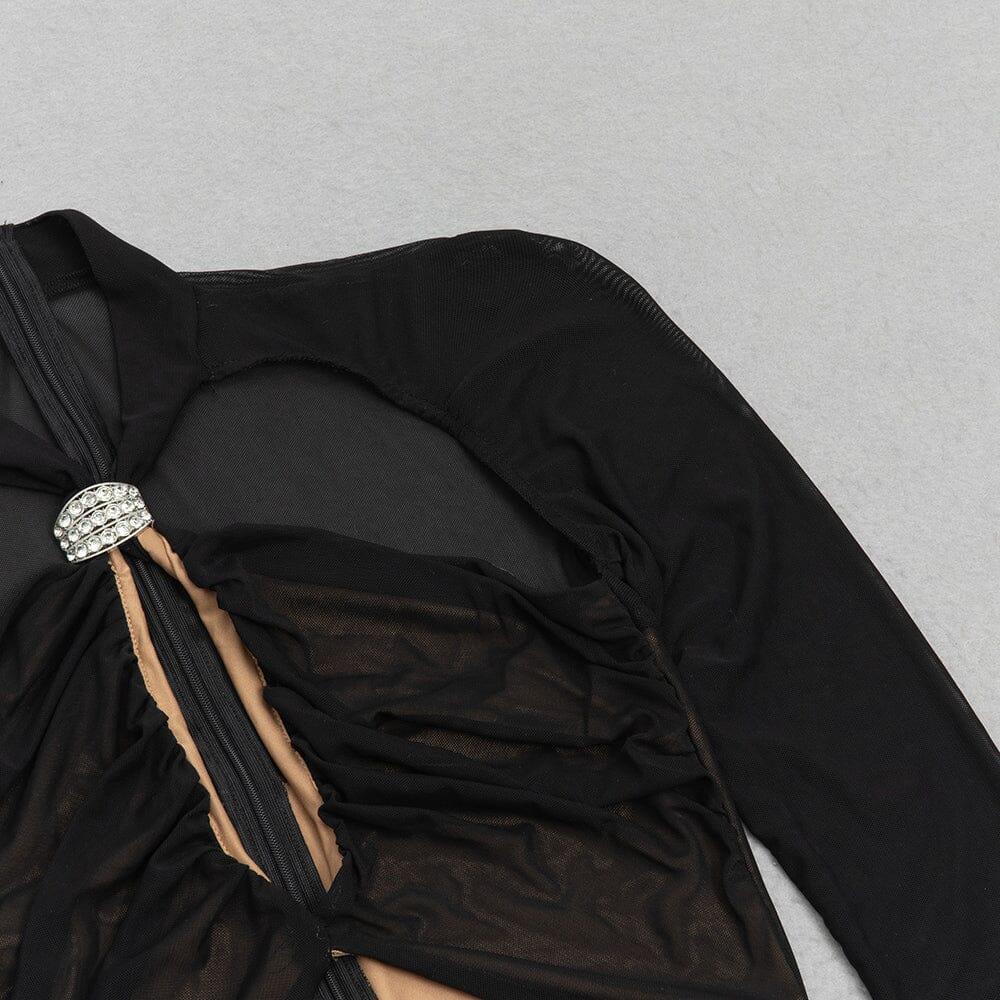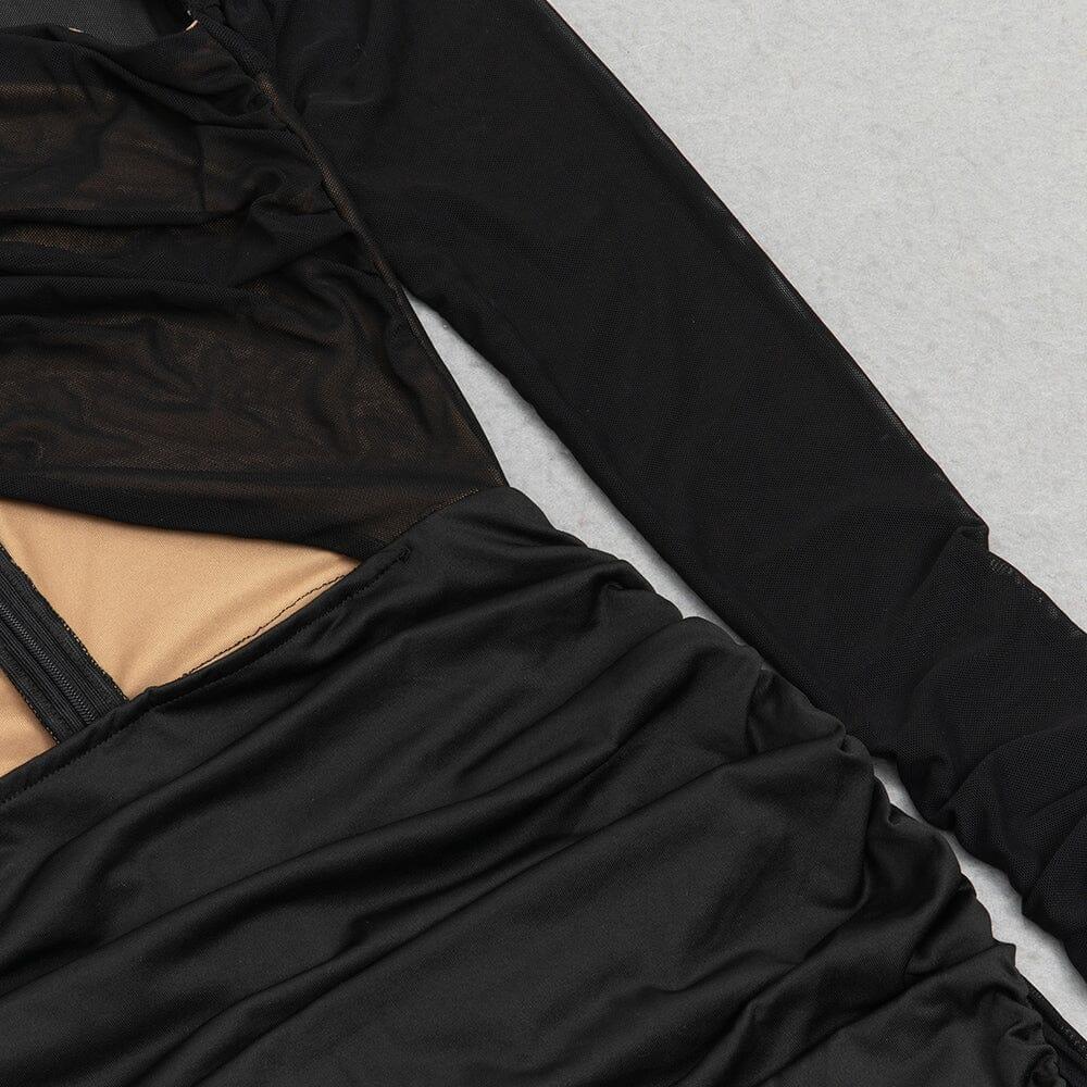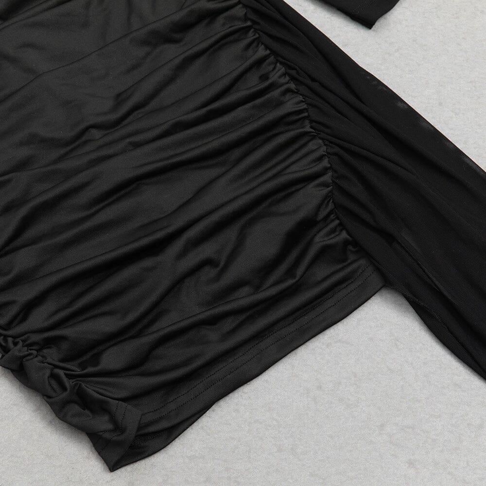 BLACK CUT OUT DRAPED SIDE BODYCON DRESS