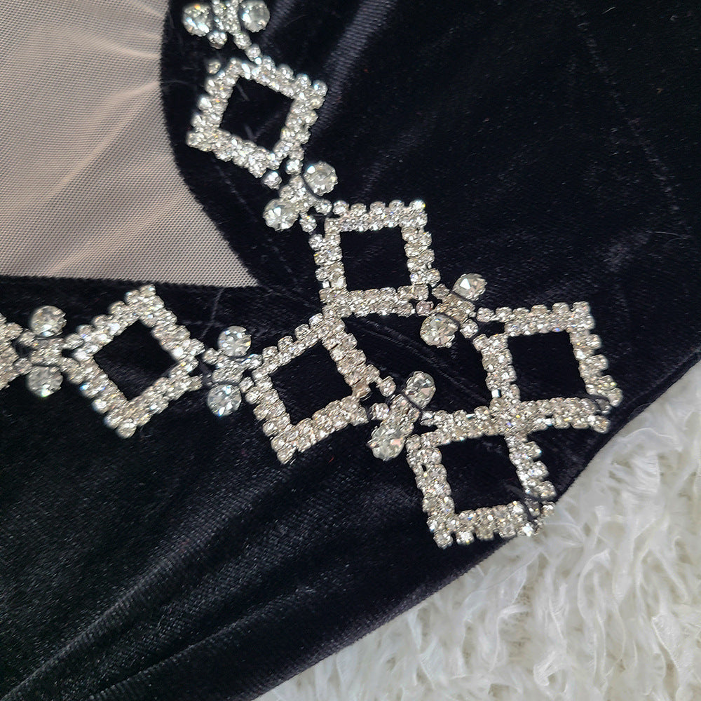 ANSA BLACK CUTOUT DIAMONDS MINI DRESS