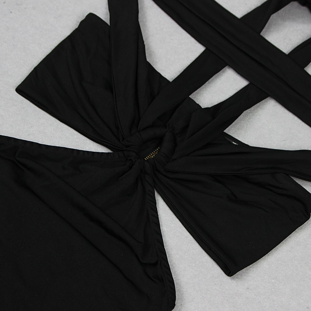 BLACK CUTOUT HALTER BANDAGE MAXI DRESS