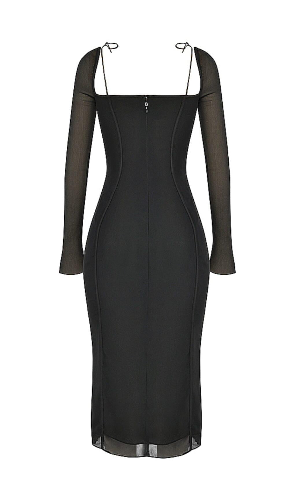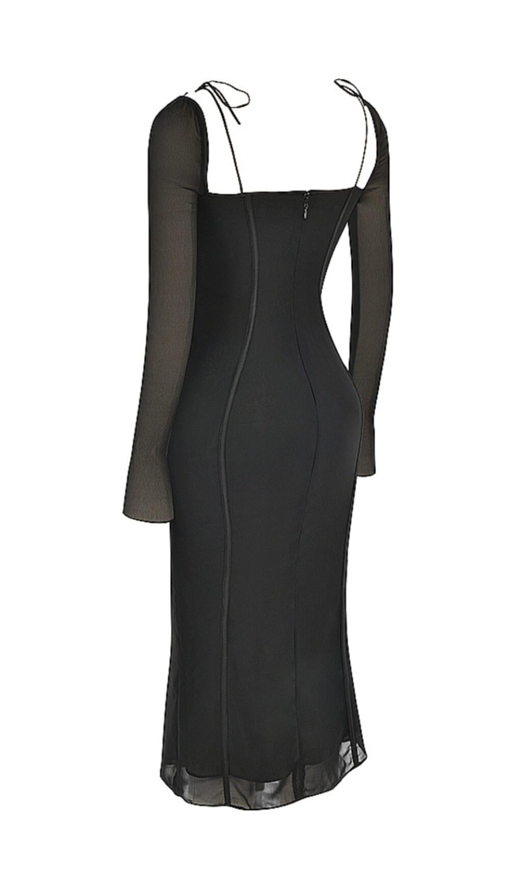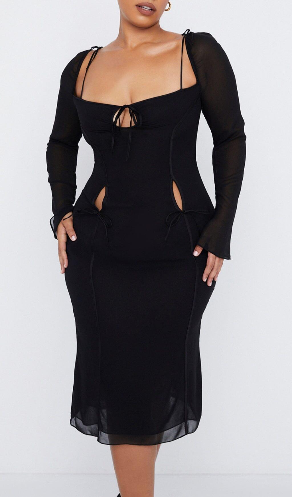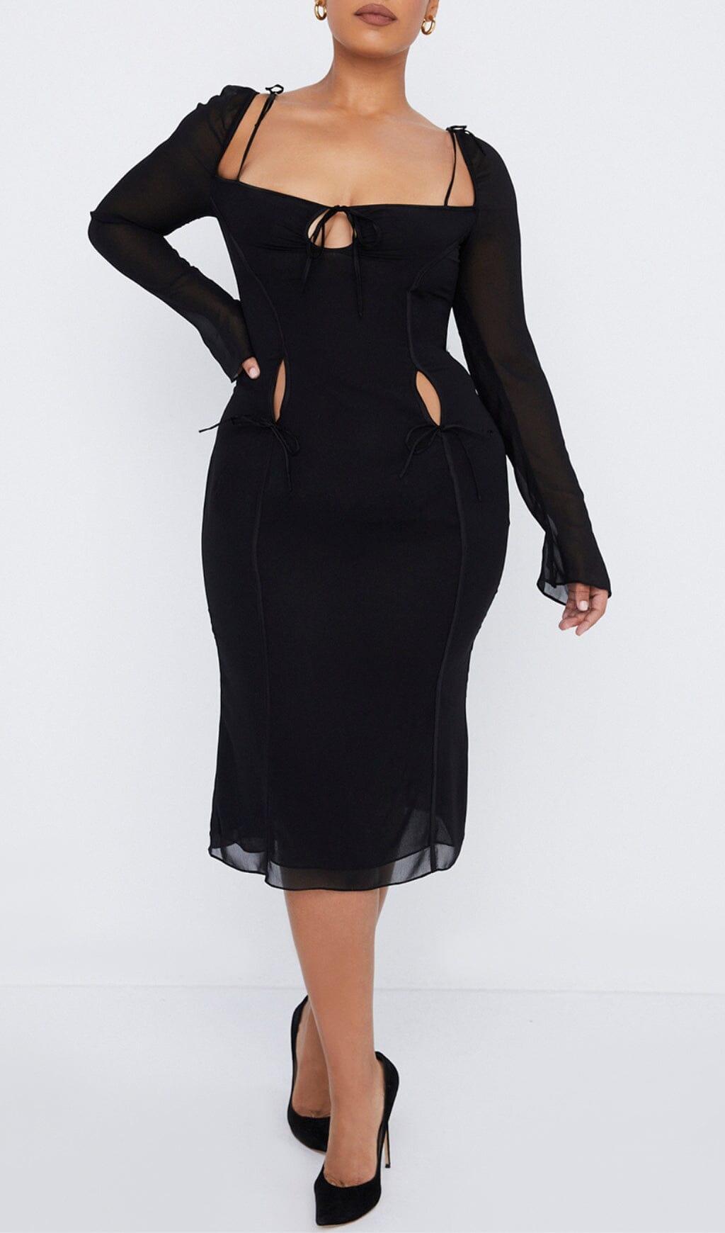 Sleek and sophisticated, the Black Cutout Midi Dress exudes confidence and is a standout piece from our Long Sleeve Dresses collection. Made from semi-sheer and lightweight georgette fabric, this dress is beautifully crafted with strategically placed cutouts to accentuate your figure. It skims your body for a close fit and features a keyhole opening to the bust and a cutout to the hips for feminine drama.