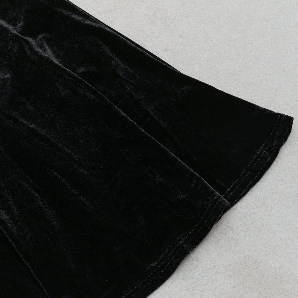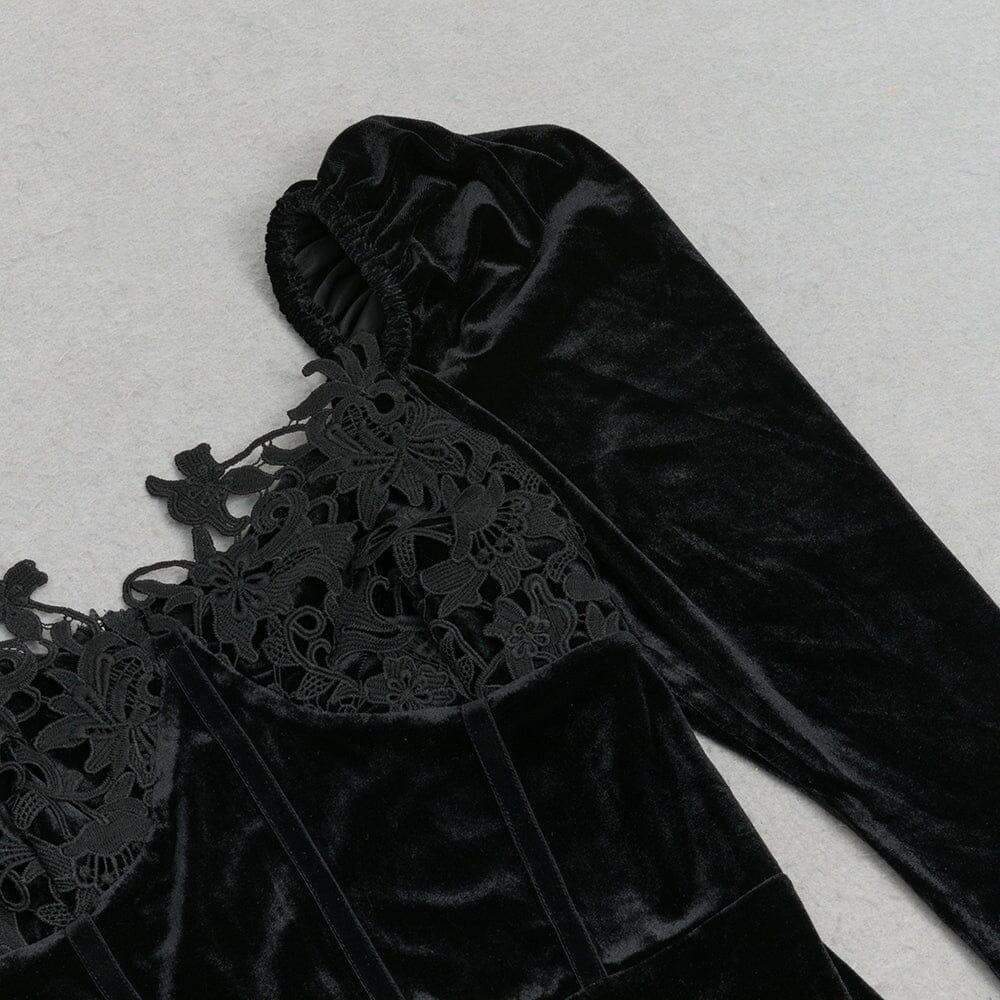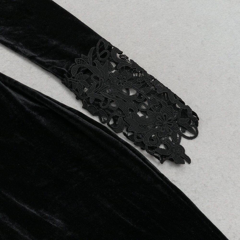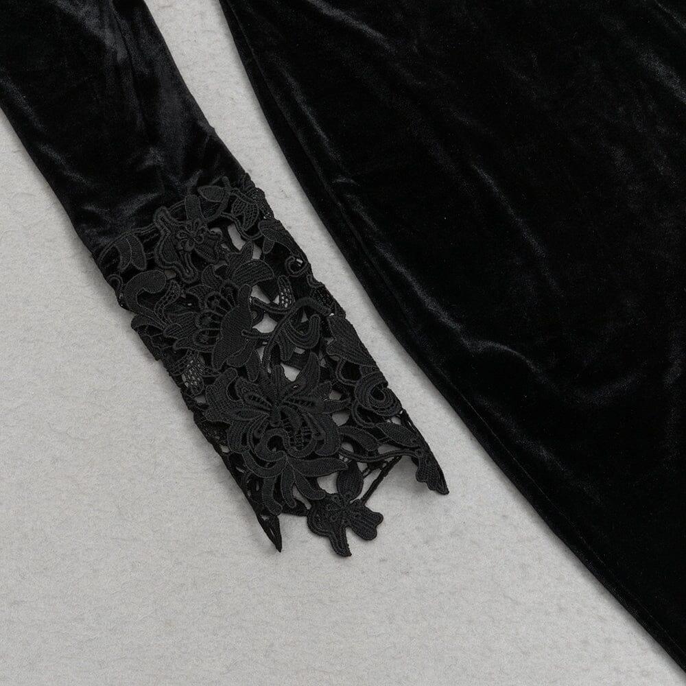 BLACK ELEGANT V-NECK LACE STITCHING FISHTAIL DRESS
