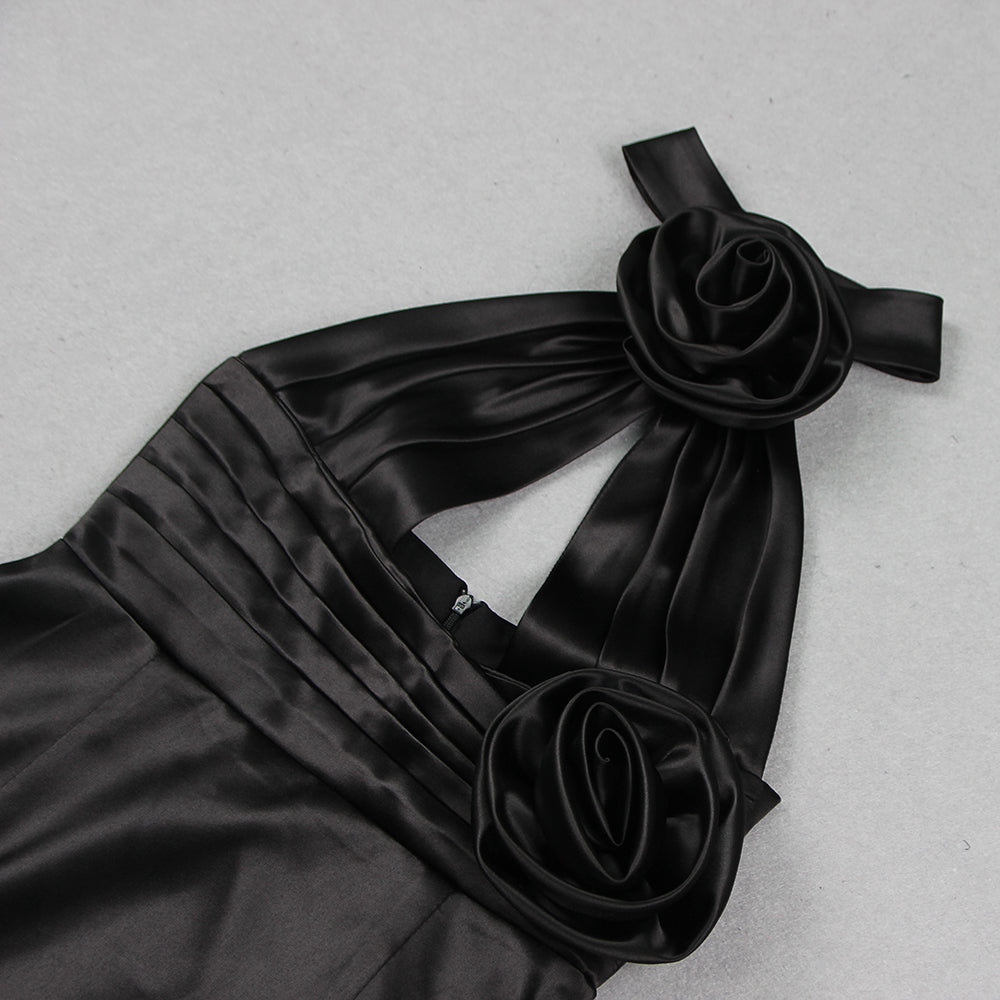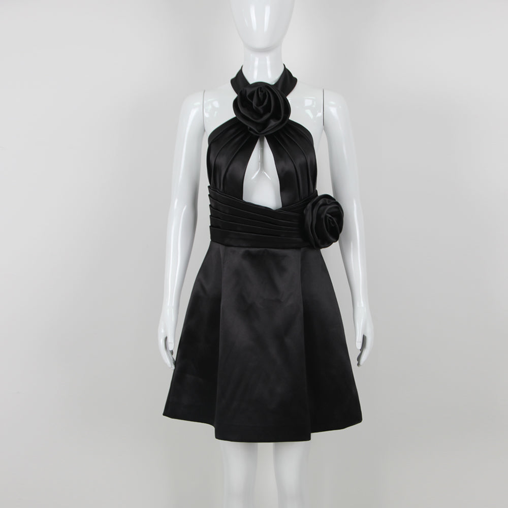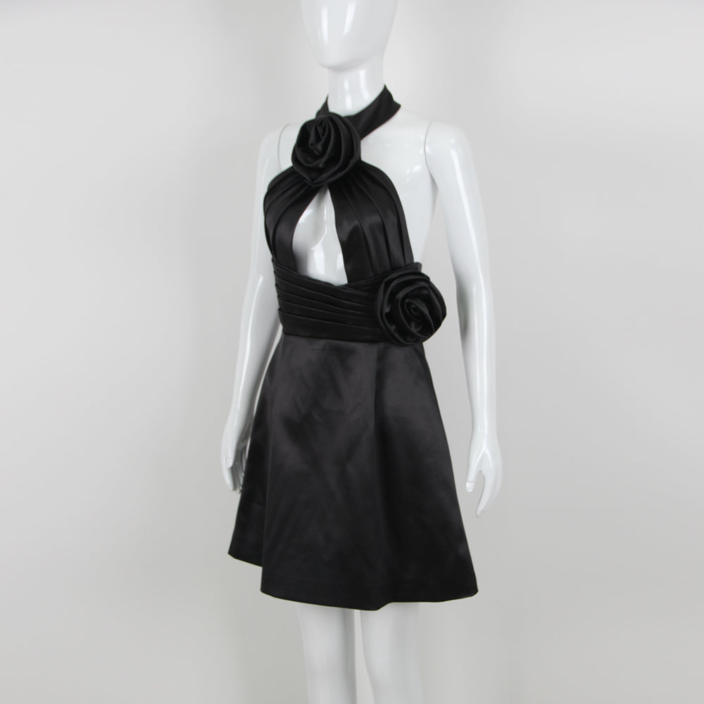 AKBAR BLACK HALTER FLOWER DRESS