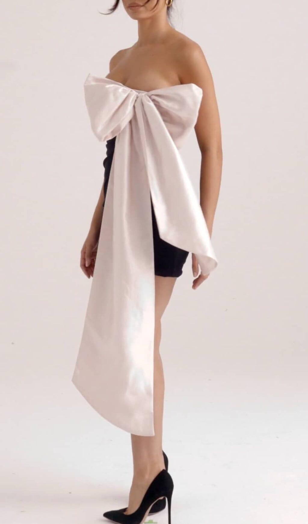 Make a Dramatic Statement with the Black & Ivory Bow Mini Dress