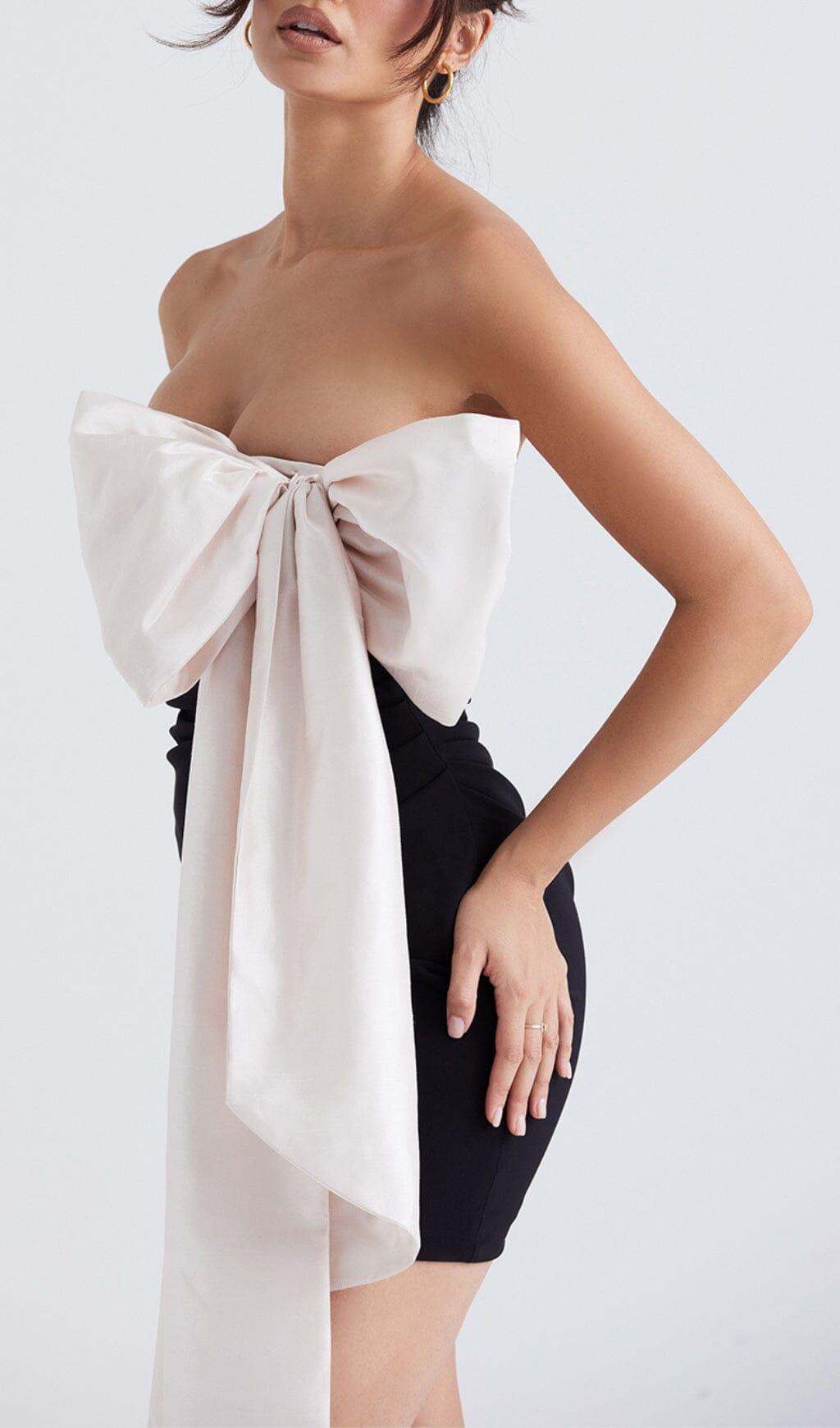 BLACK & IVORY BOW MINI DRESS