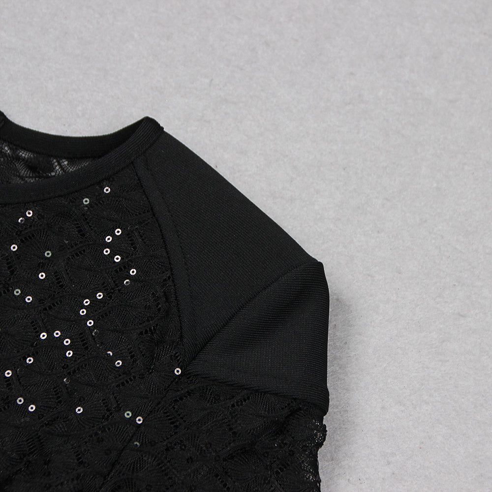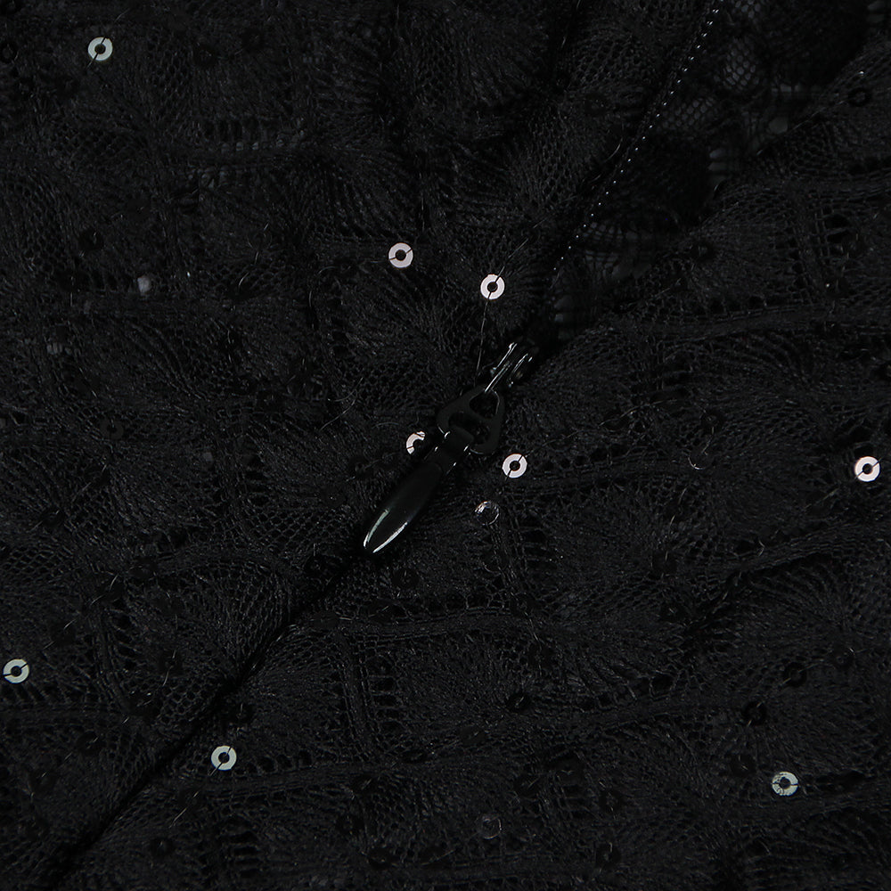 BLACK FEATHER SEQUIN JUMPSUIT