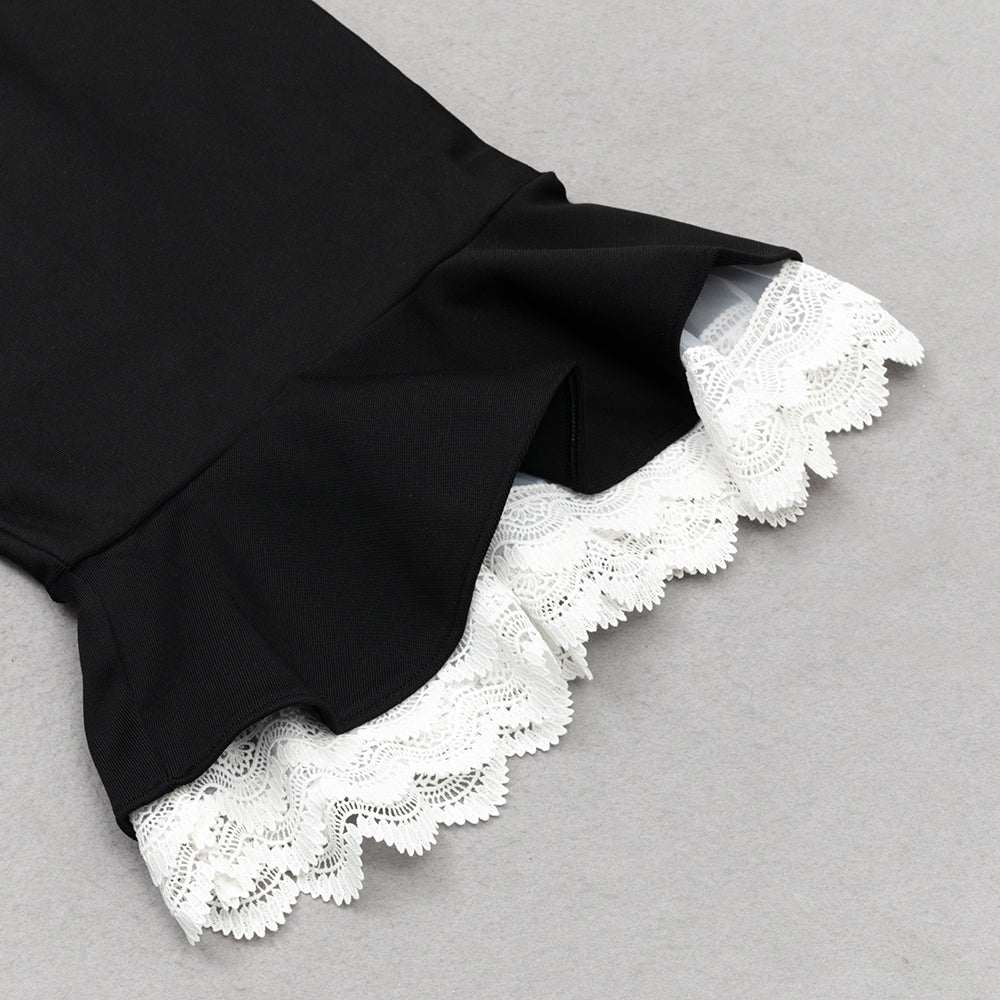 BLACK LACE BUTTON FRONT MERMAID HEM BANDAGE DRESS