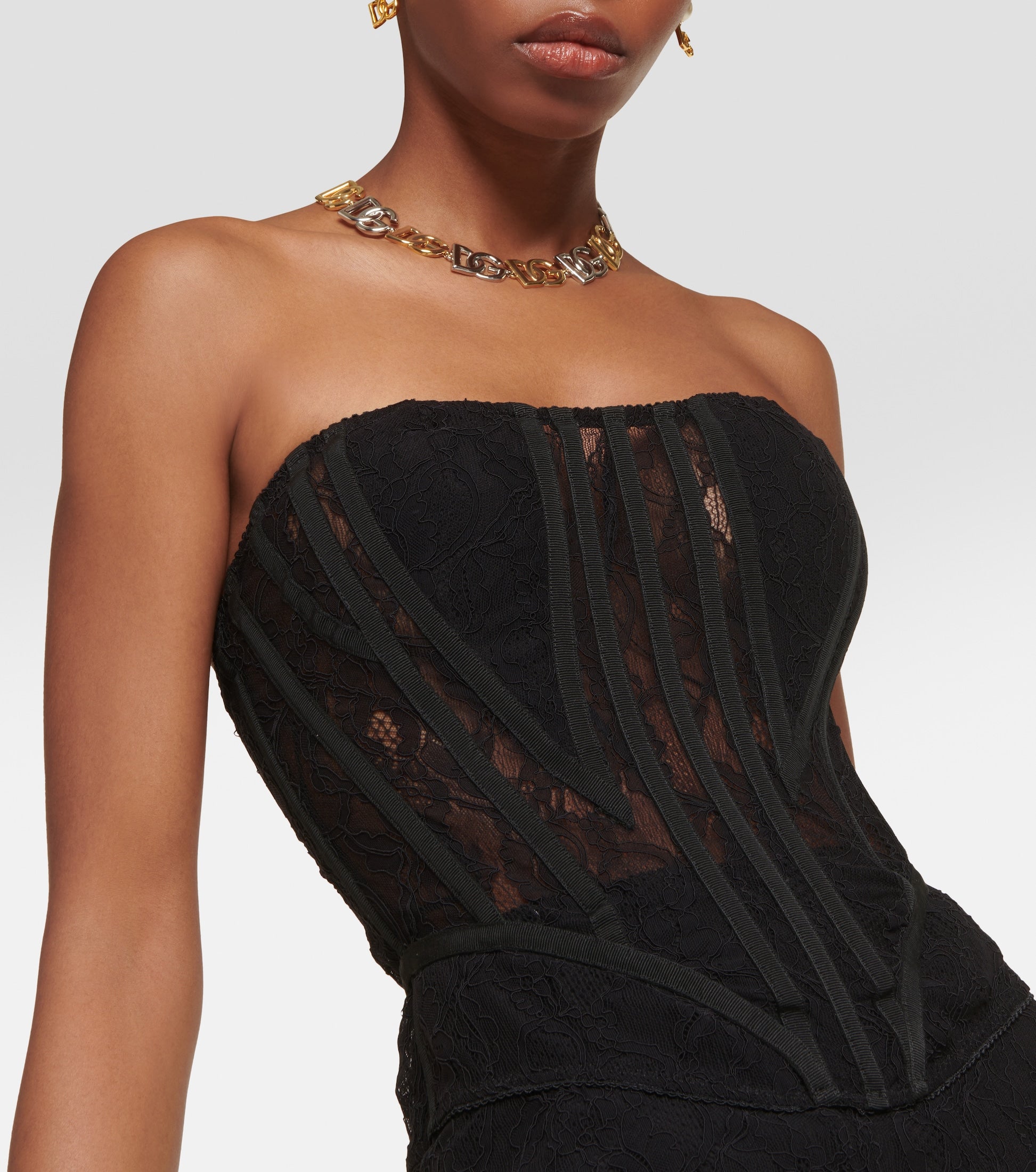 BLACK LACE DRESS WITH DENUDED SHOULDERS