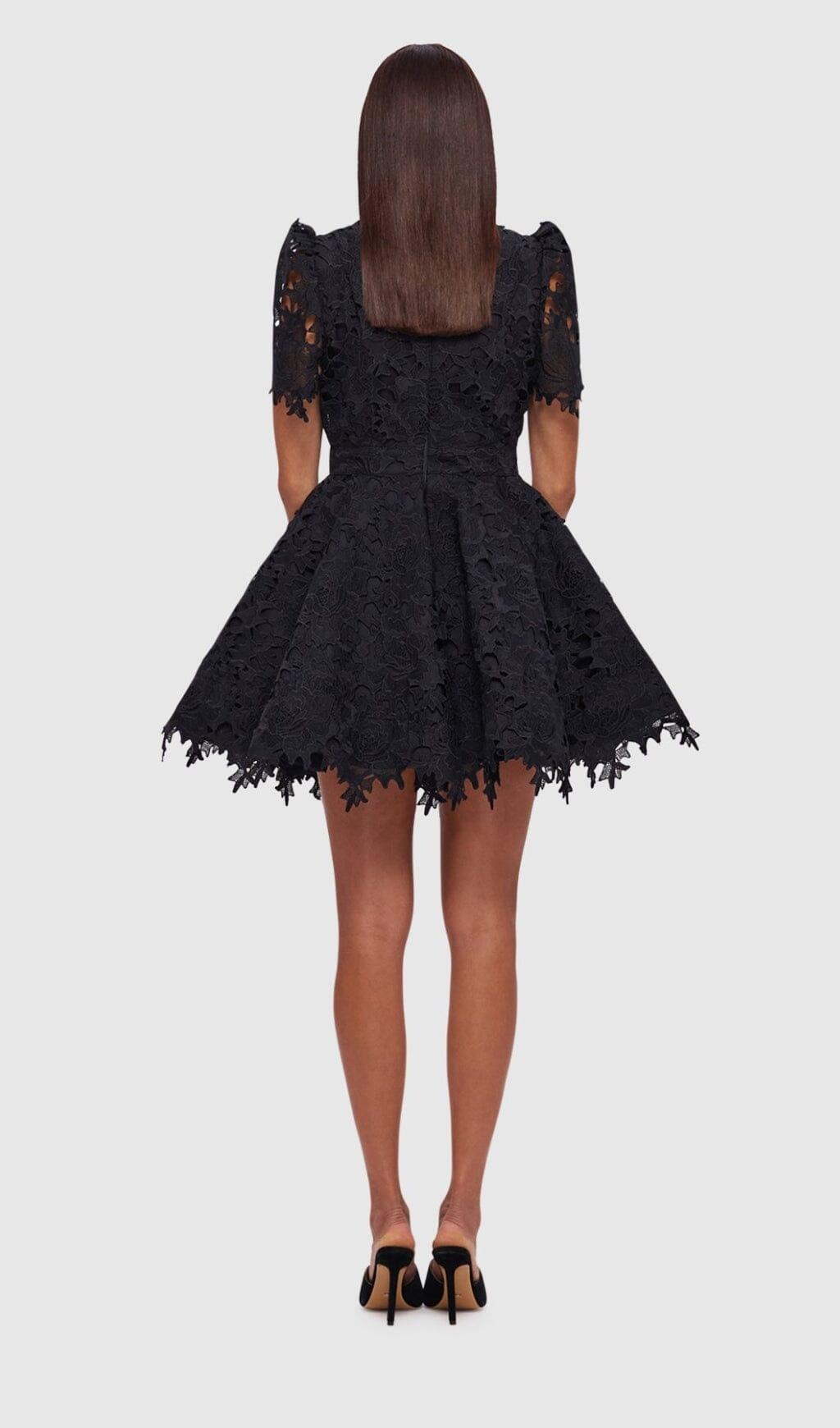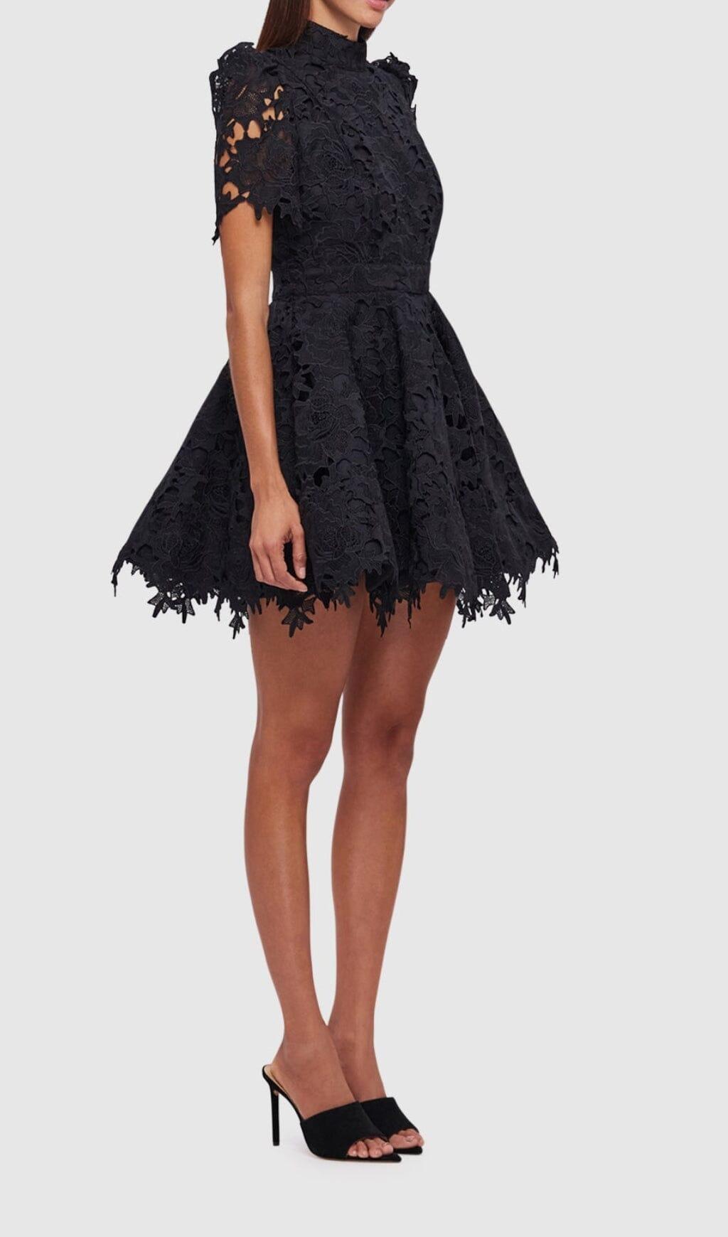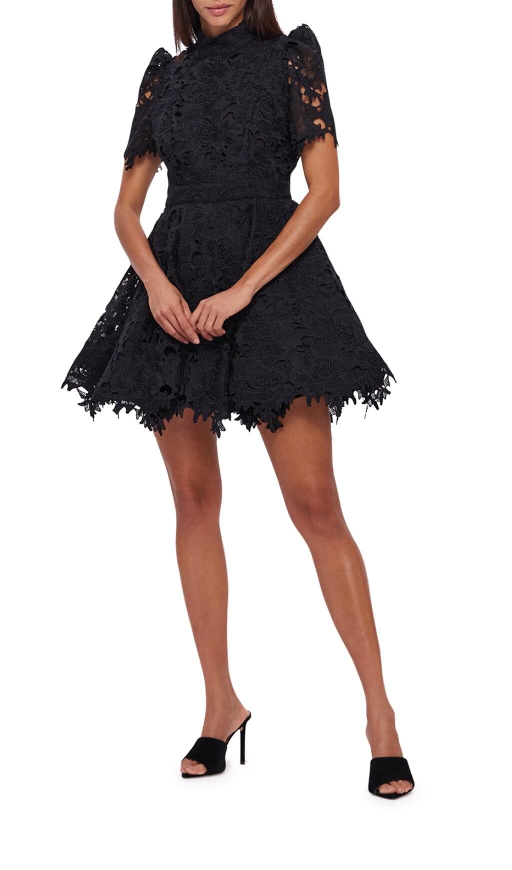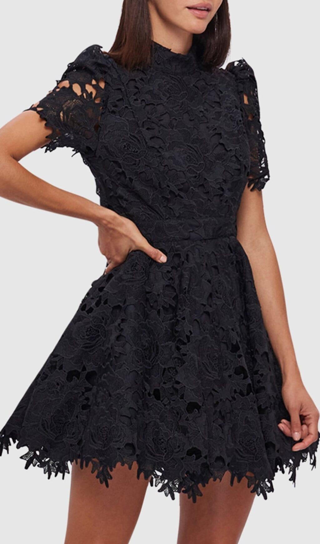 BLACK LACE SHORT SLEEVE MINI DRESS