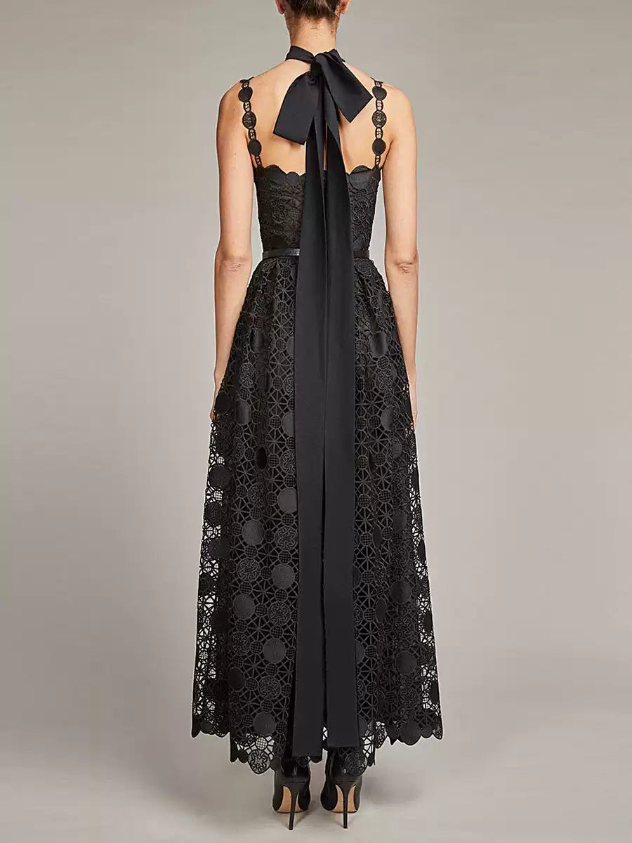 Black Lace Strapless Maxi Dress