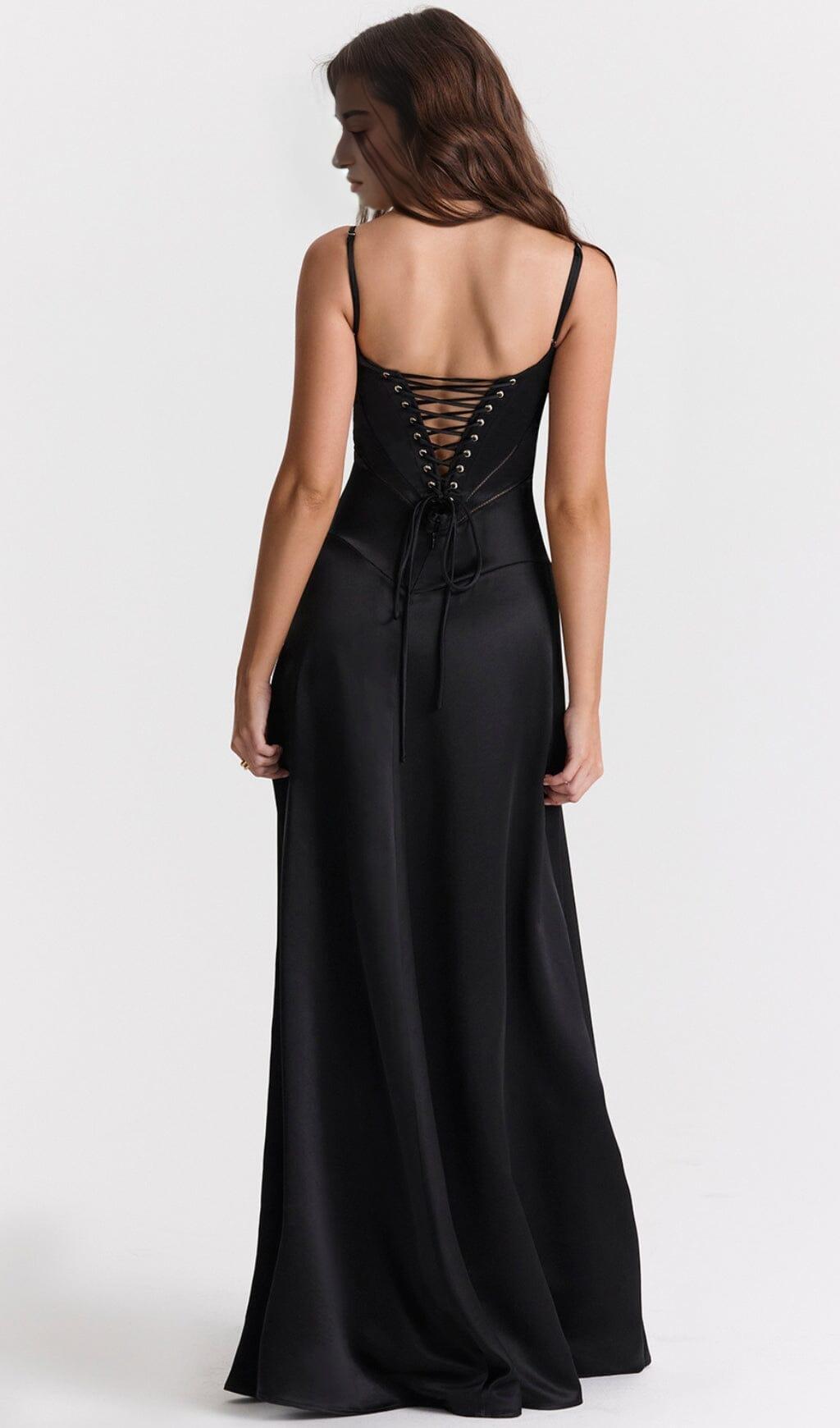 Introducing our most elegant dress yet - the Black Lace Up Maxi Dress. This dress is the epitome of black tie dressing, perfect for those special occasions where you want to make a statement. Made from luxurious black silky satin, it offers a fluid drape that will have you feeling like royalty.