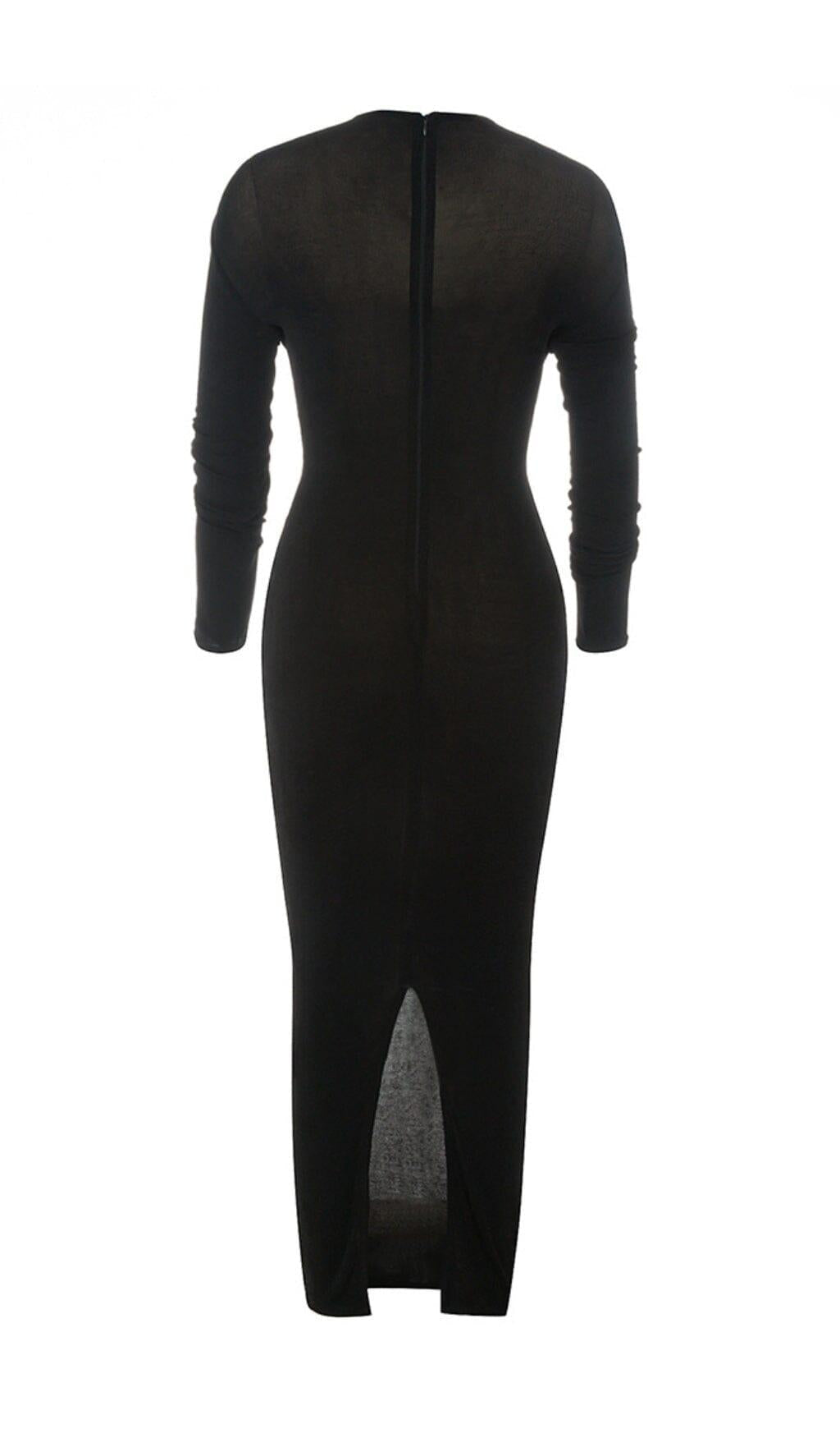 BLACK LEAKY SHOULDER CROSS-LACE-UP SLIM-FIT DRESS