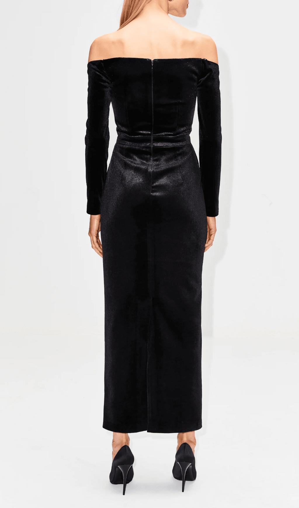BLACK LONG SLEEVE LACE VELVET MAXI DRESS