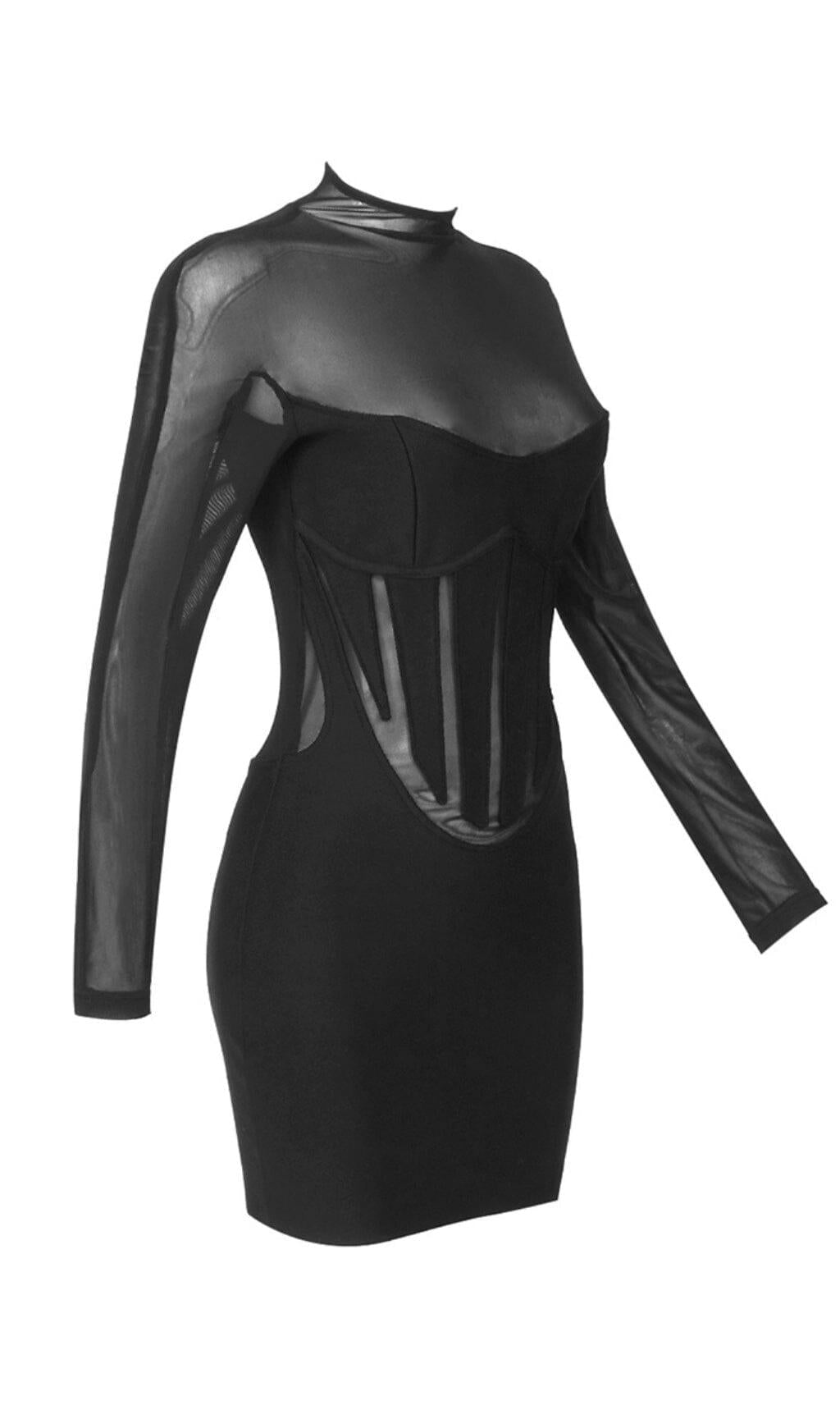 MESH STITCHED SLIM-FIT MINI DRESS IN BLACK