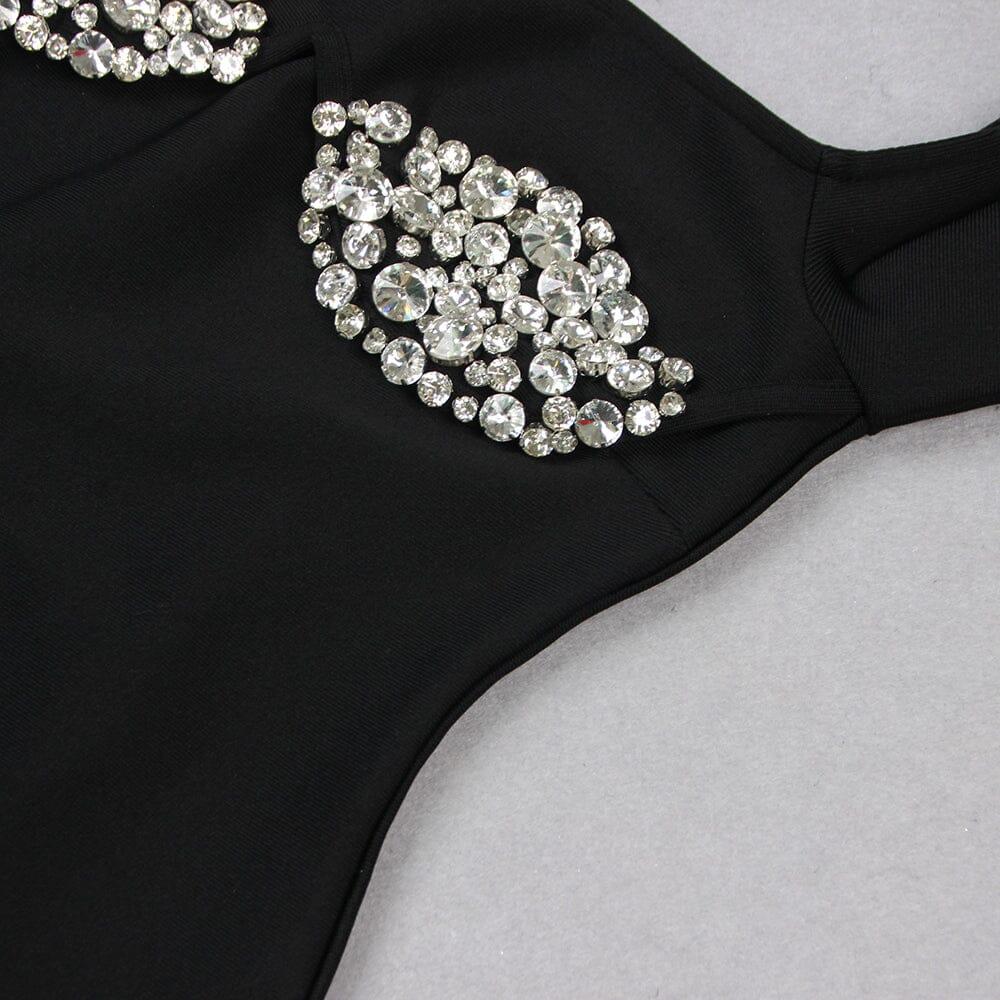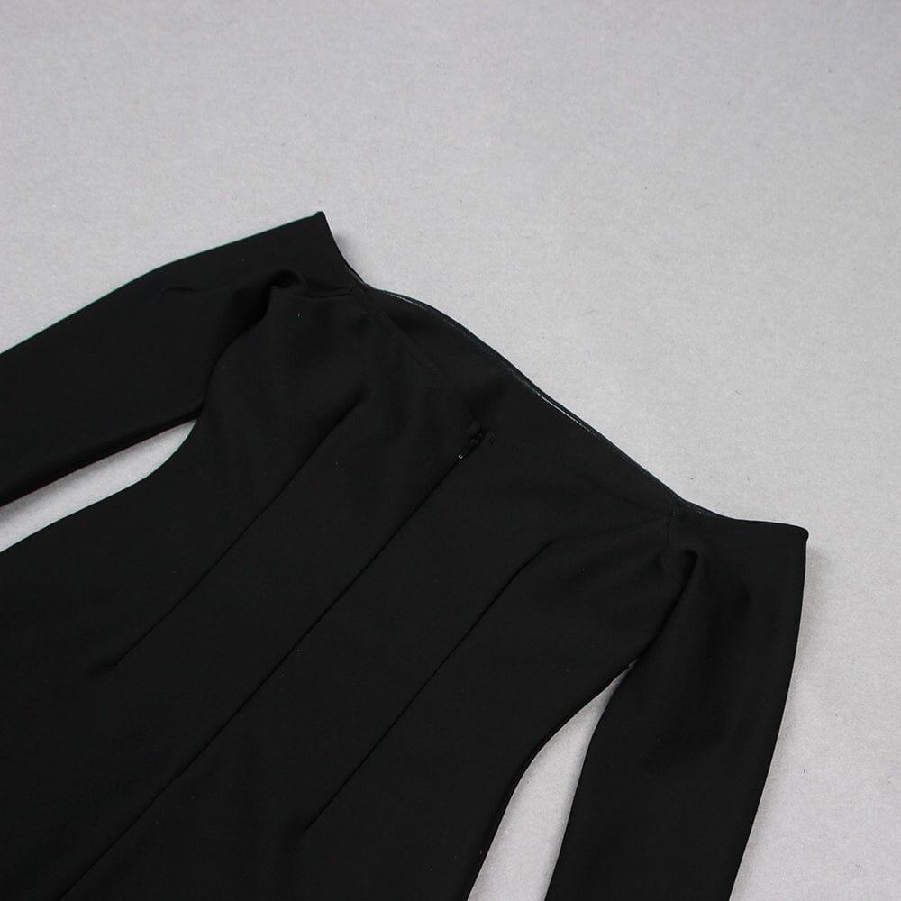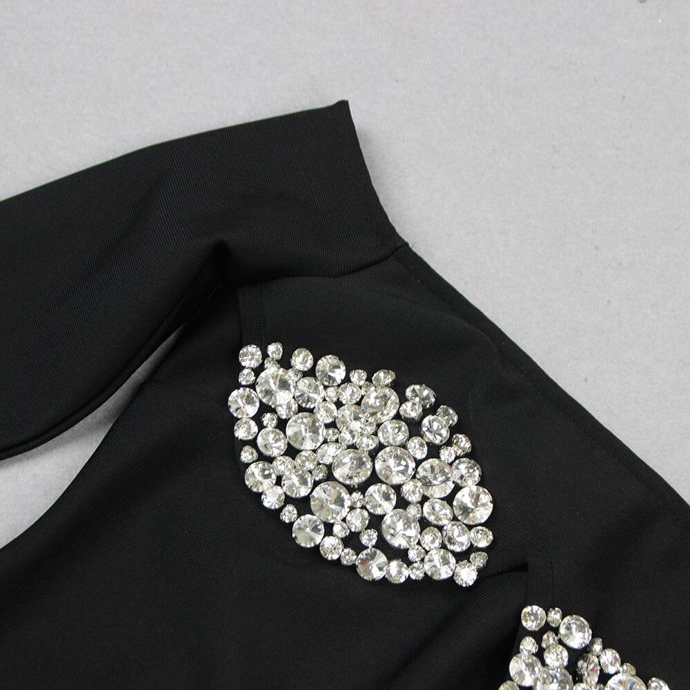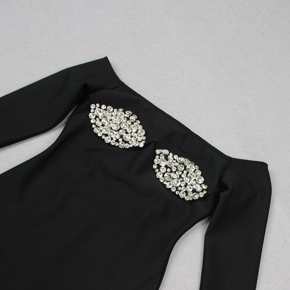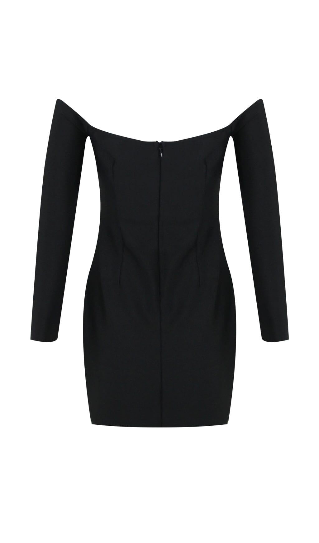 BLACK OFF SHOULDER CRYSTAL CUP MINI DRESS