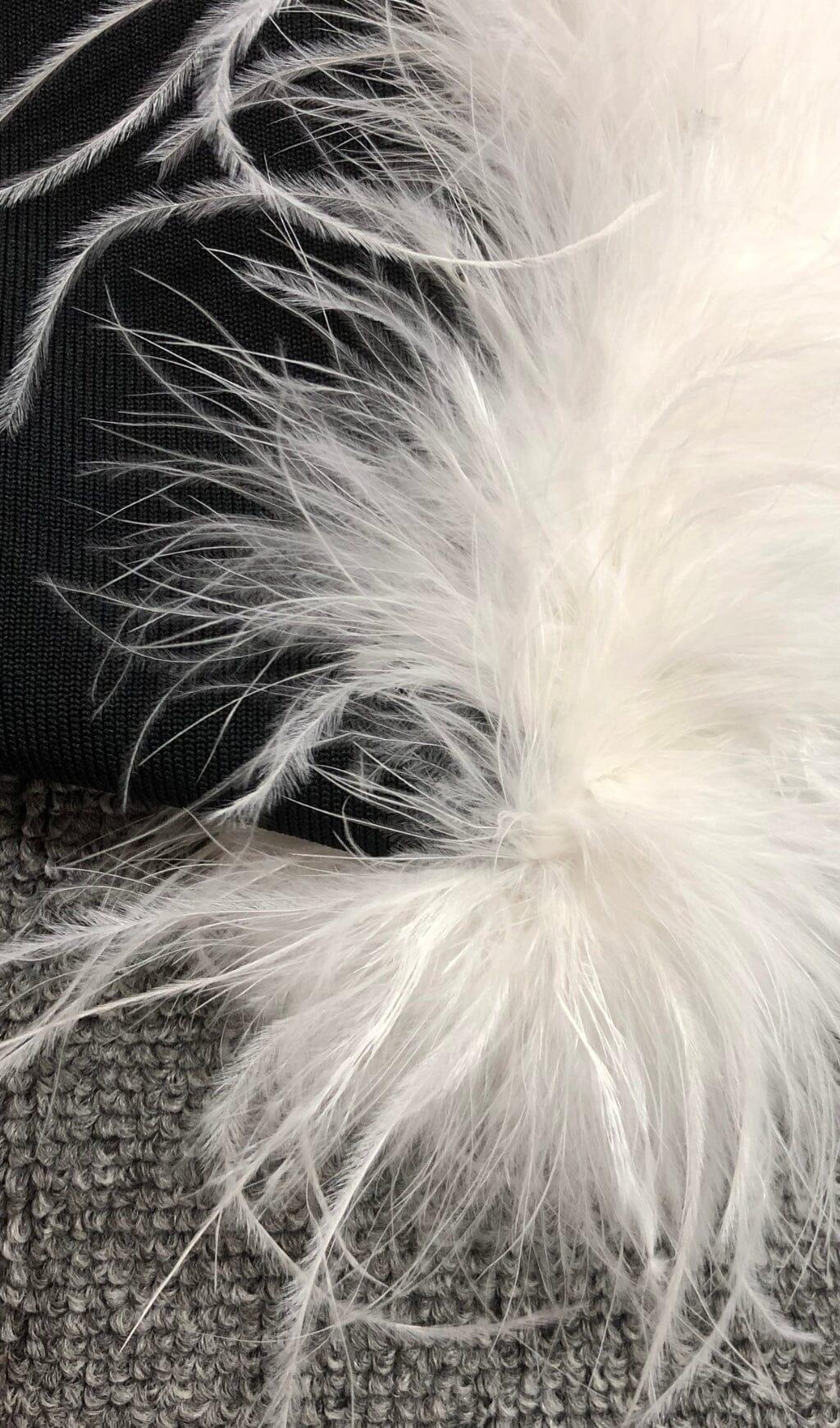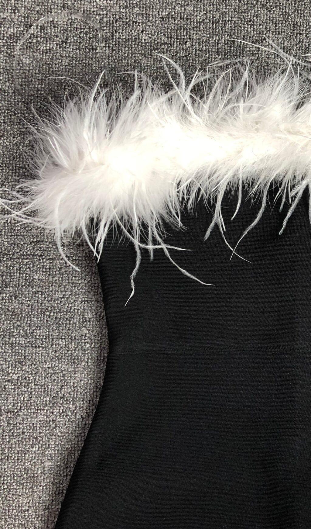 Look like a rockstar in this stunning maxi dress! The stretchy bandage style hugs you in all the right places, while luscious feathers cascade down the off-shoulder neckline. Not to mention it's a show-stopper in all-black! Perfect for any special occasion this season. Live it up!