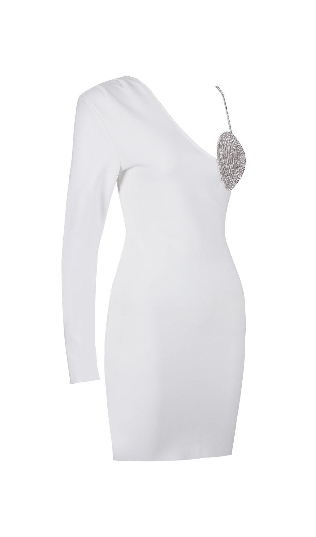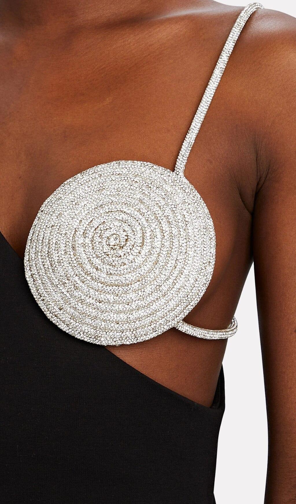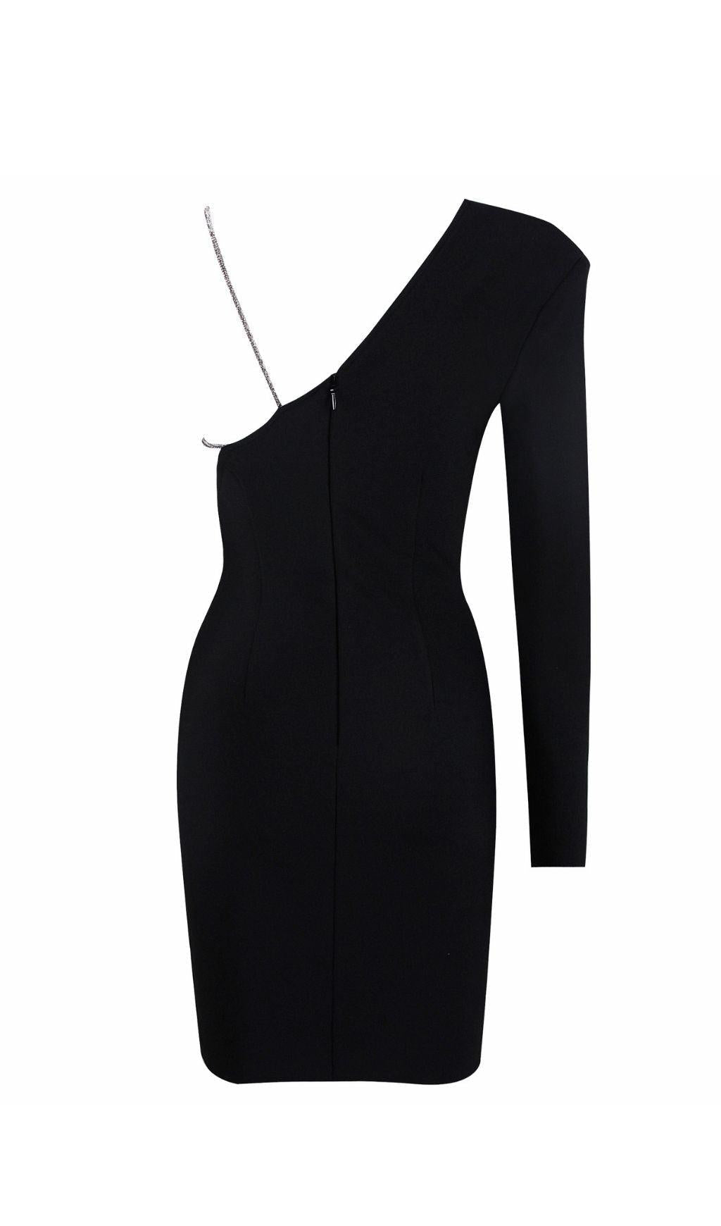 BLACK ONE SHOULDER CRYSTAL MINI DRESS