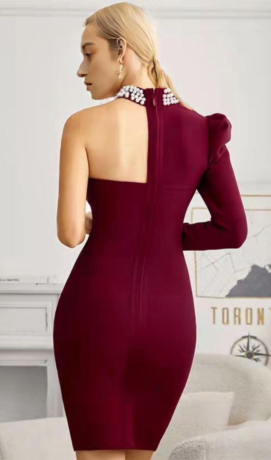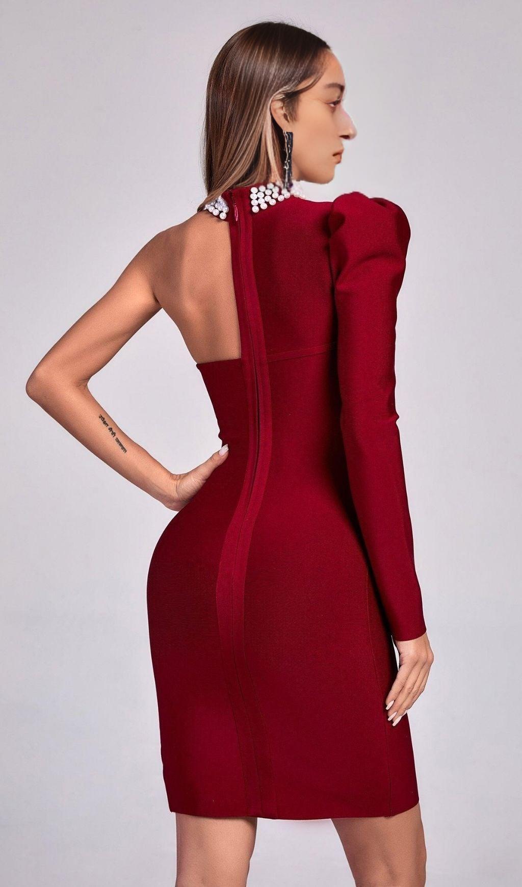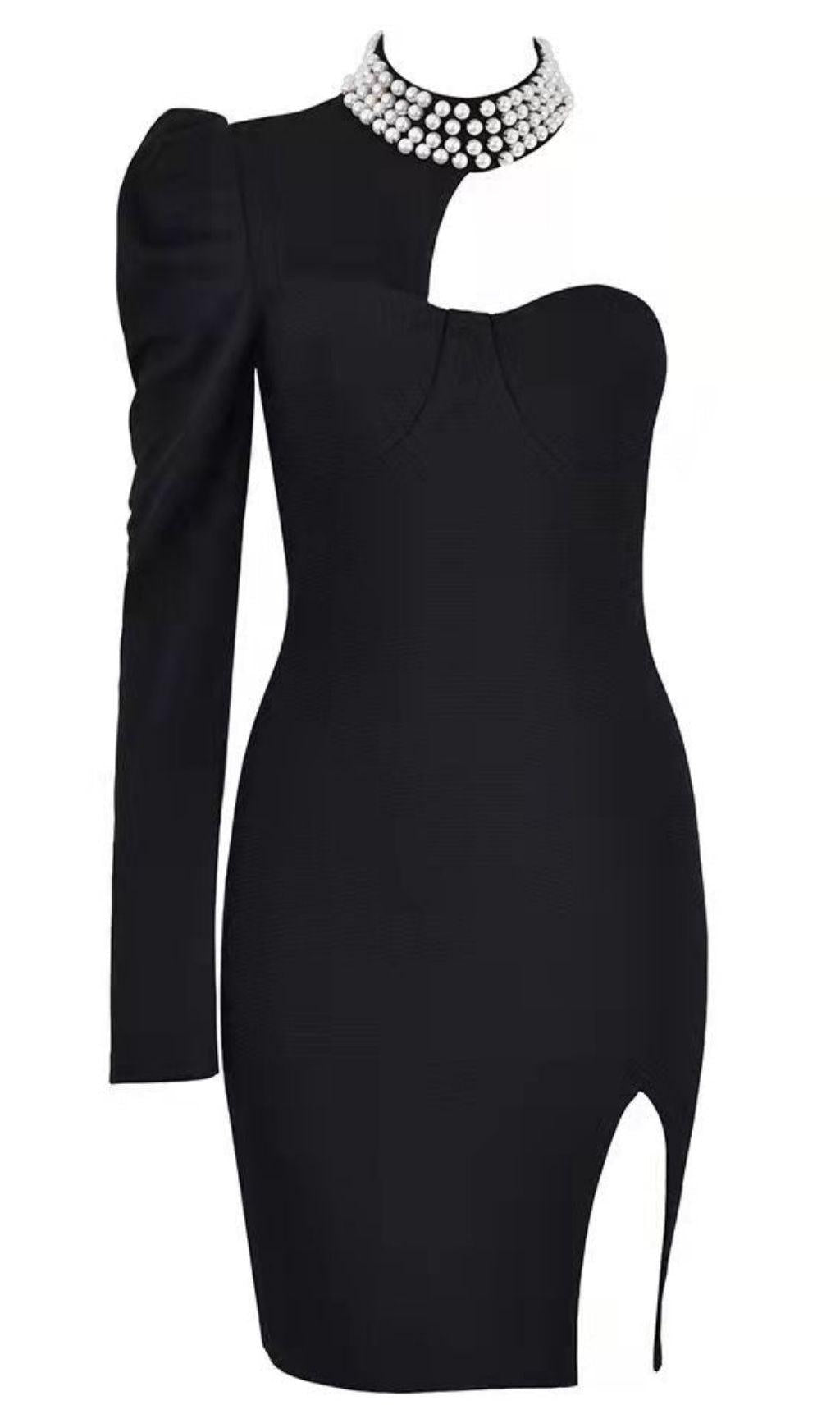 BLACK PEARL ONE SHOULDER MINI BANDAGE DRESS