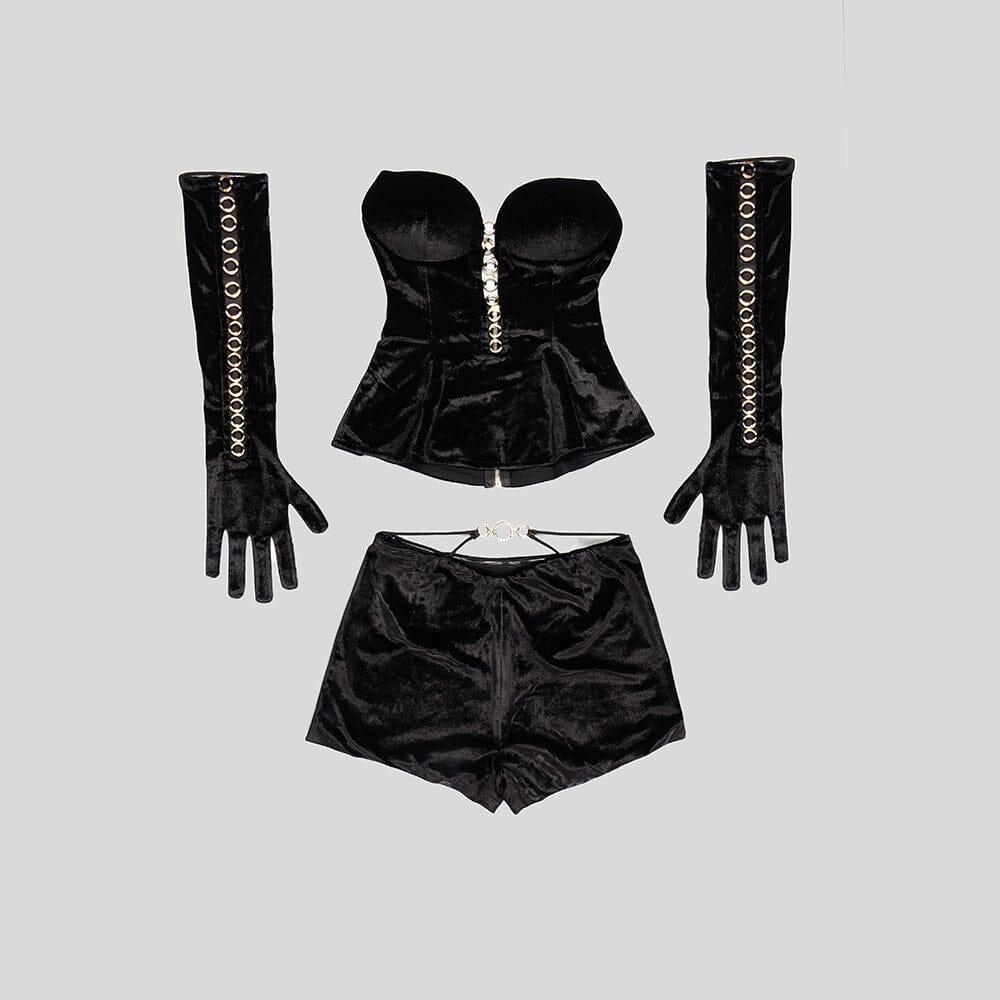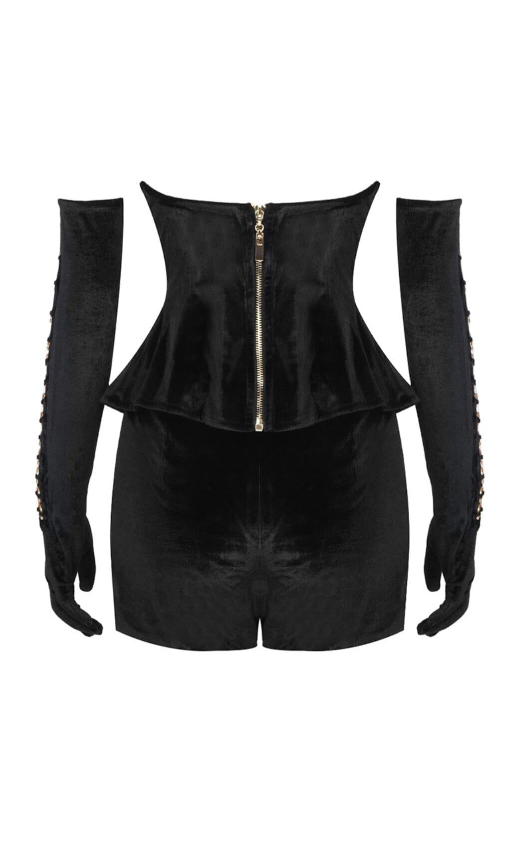 BLACK PLAIN CUTOUT HOOP ACCENT TUBE TOP & SHORTS
