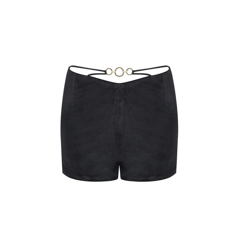 Look slick and stylish in this two-piece BLACK PLAIN CUTOUT HOOP ACCENT TUBE TOP & SHORTS set. Stand out from the crowd with the cut-out hoops that add the perfect touch of sass! Perfect for a night out or a day at the beach, you'll be looking fashionable (and cool!) no matter where you go.