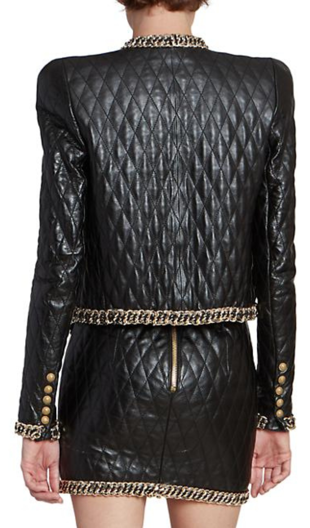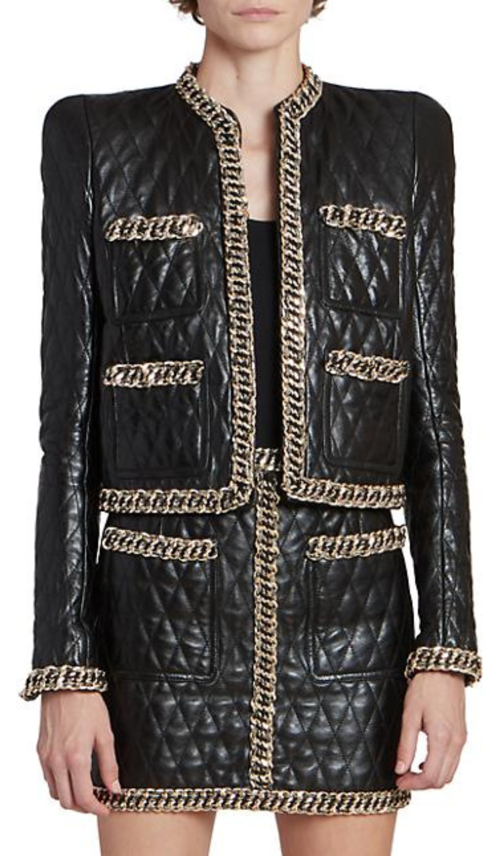 BLACK QUILTED LEATHER CHAIN SUIT