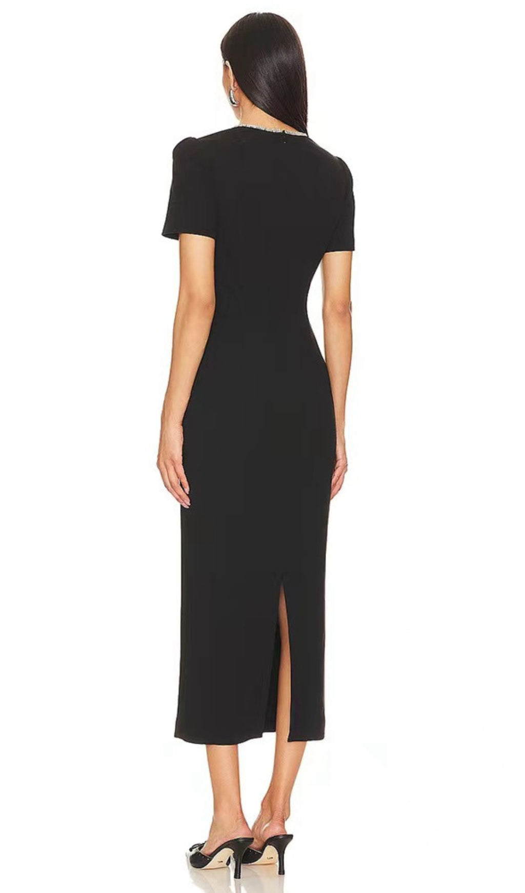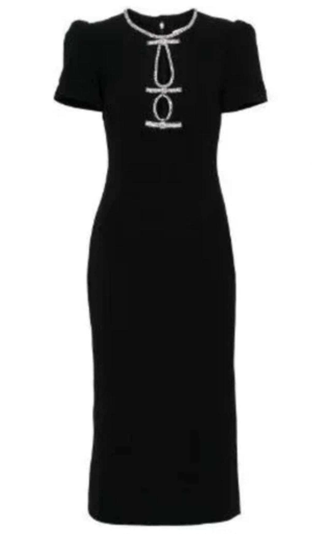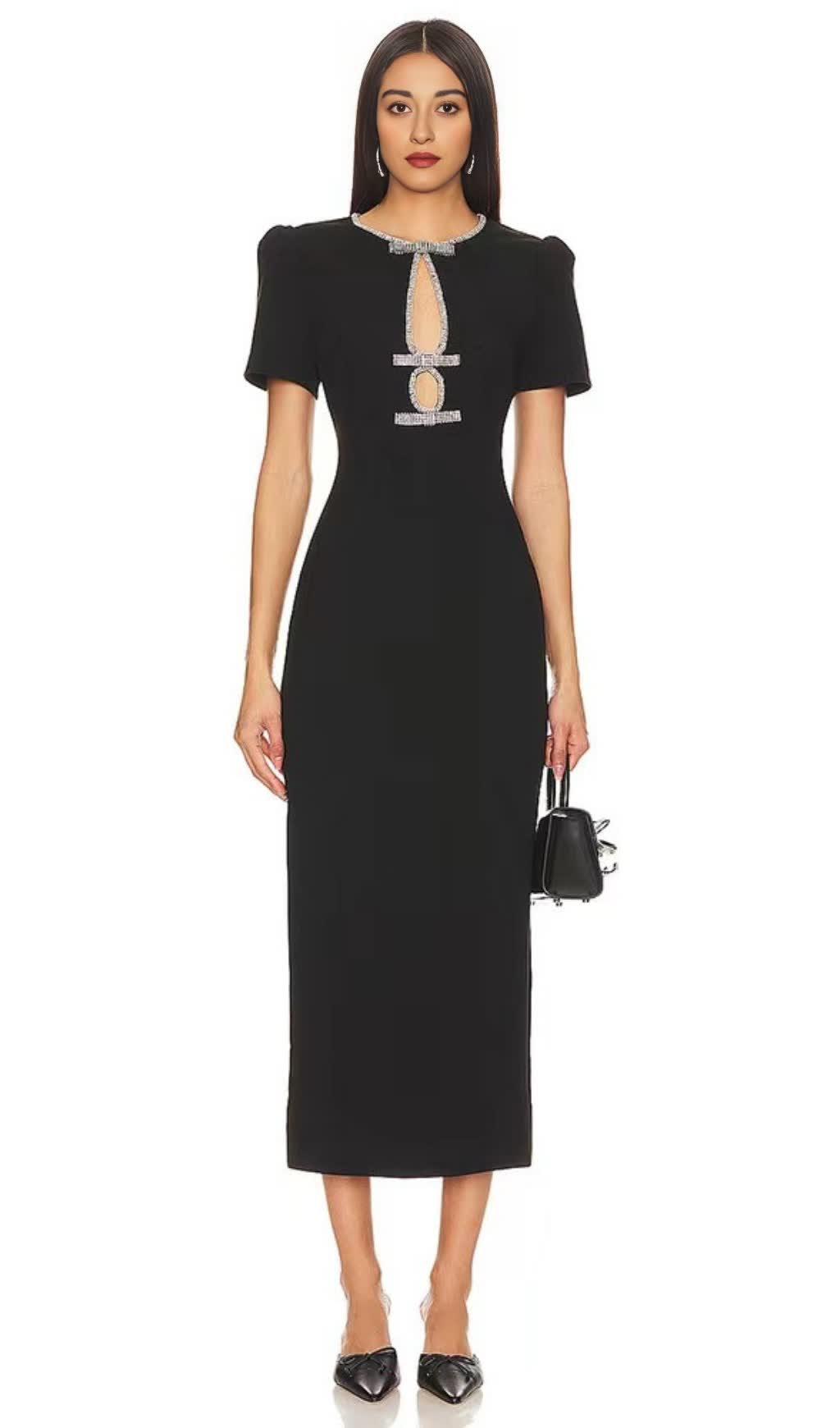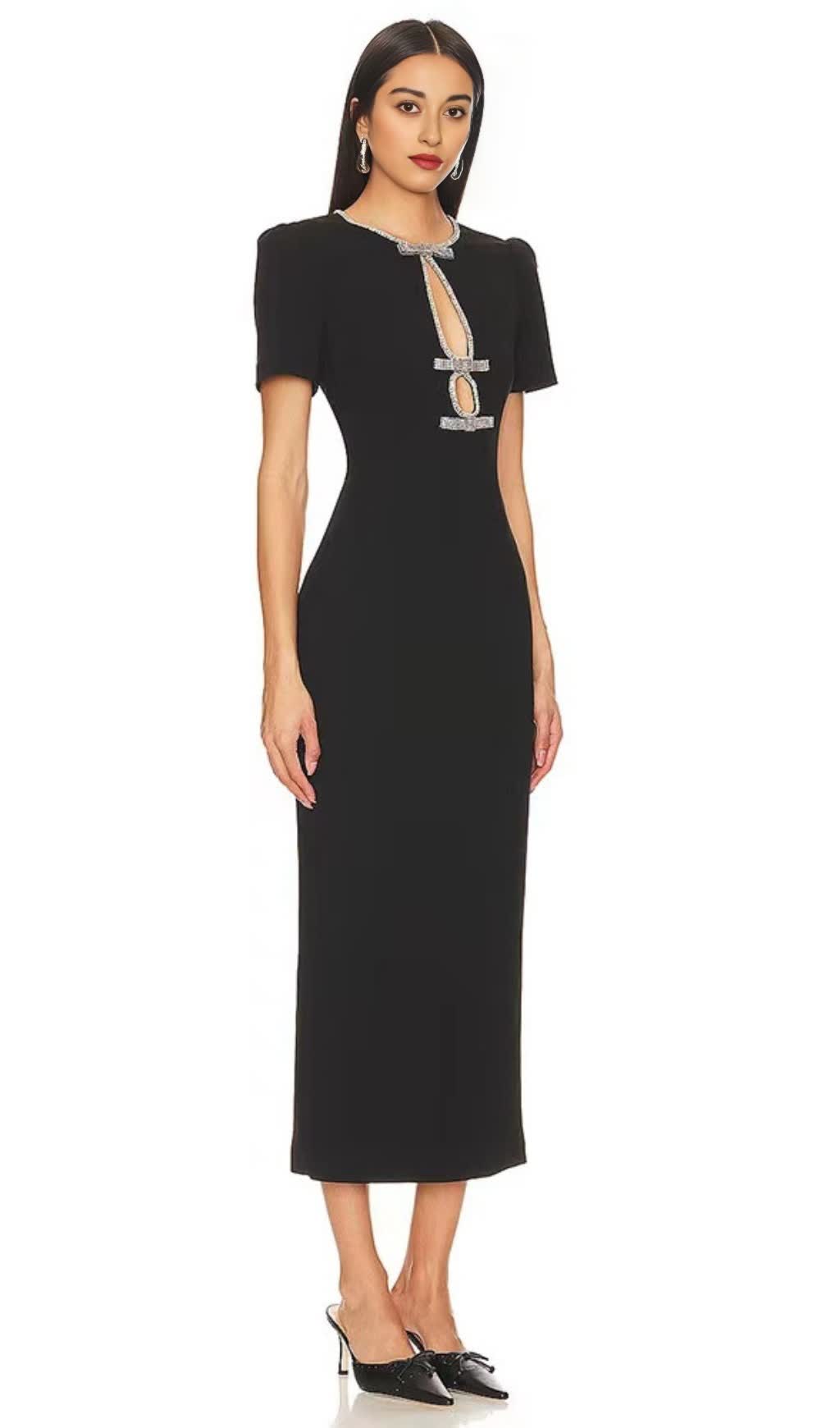 BLACK RHINESTONE-EMBELLISHED MIDI DRESS