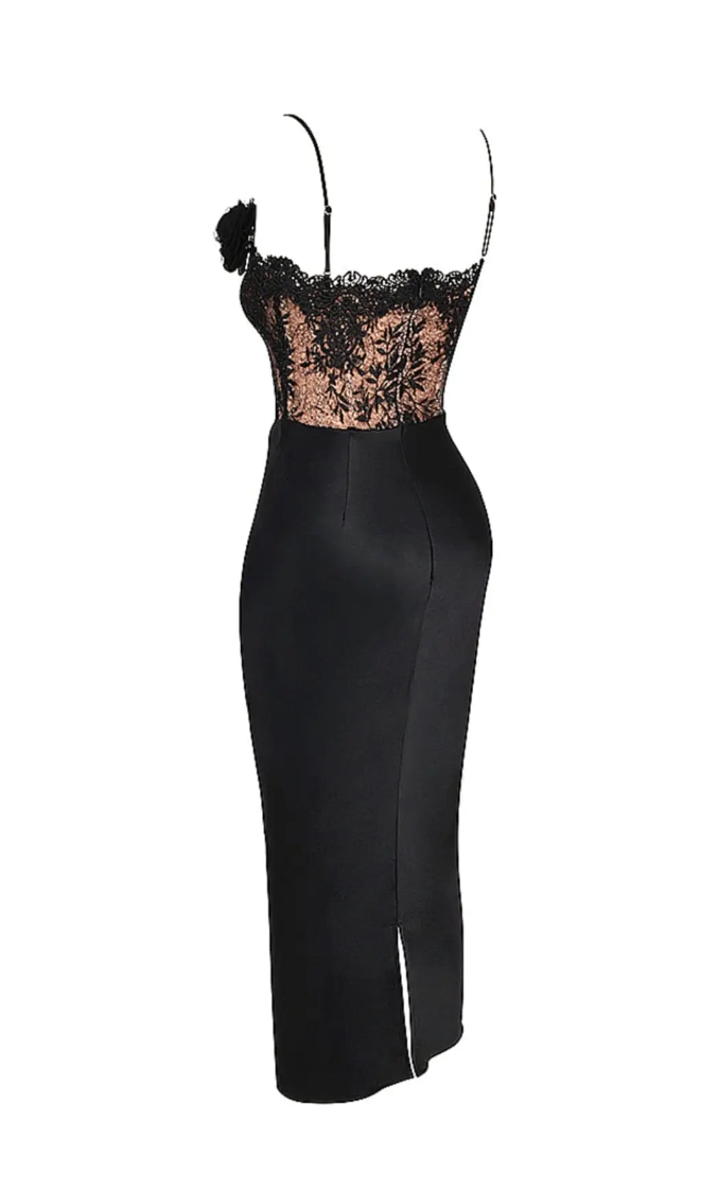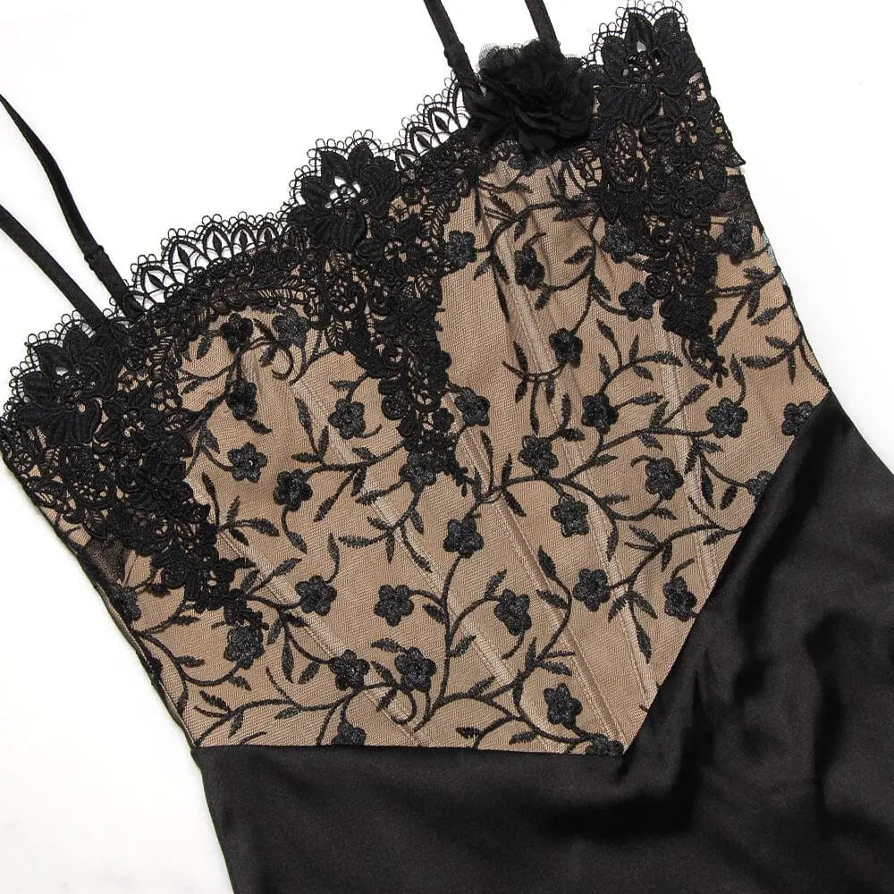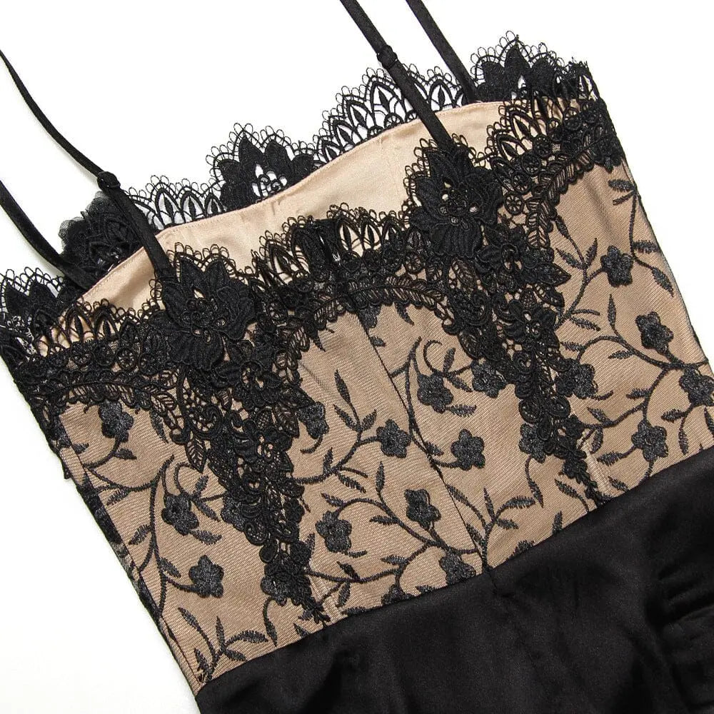 BLACK SATIN AND LACE CORSET DRESS