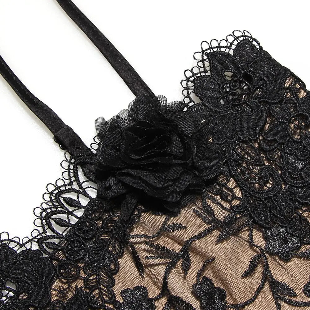 Materials: Heavy Silky Satin, Dense Floral Lace, Lace Trim, Power Mesh