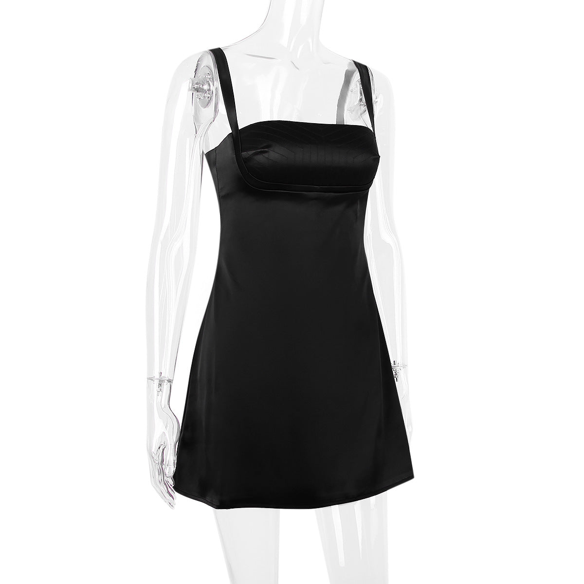 BLACK SATIN MINI DRESS