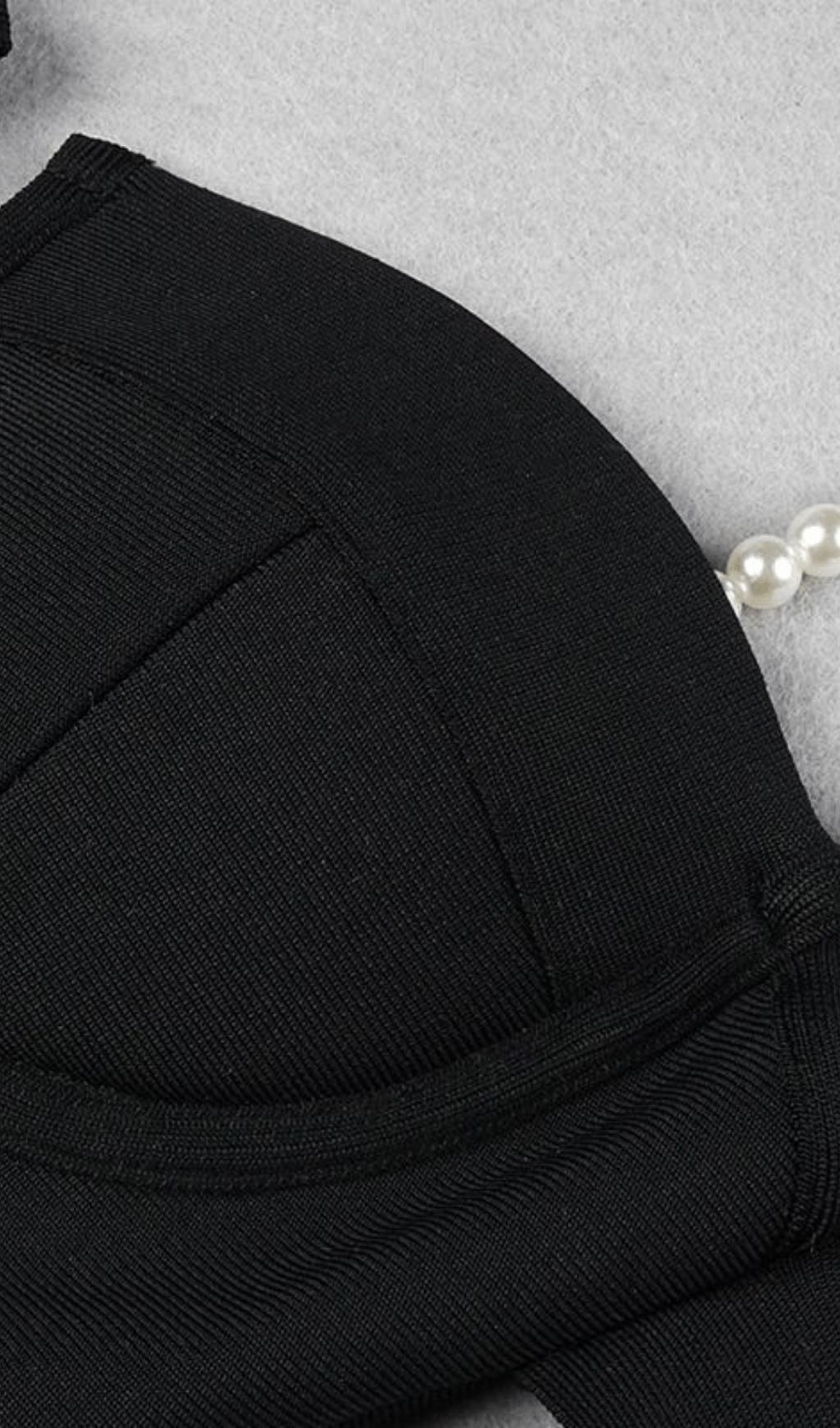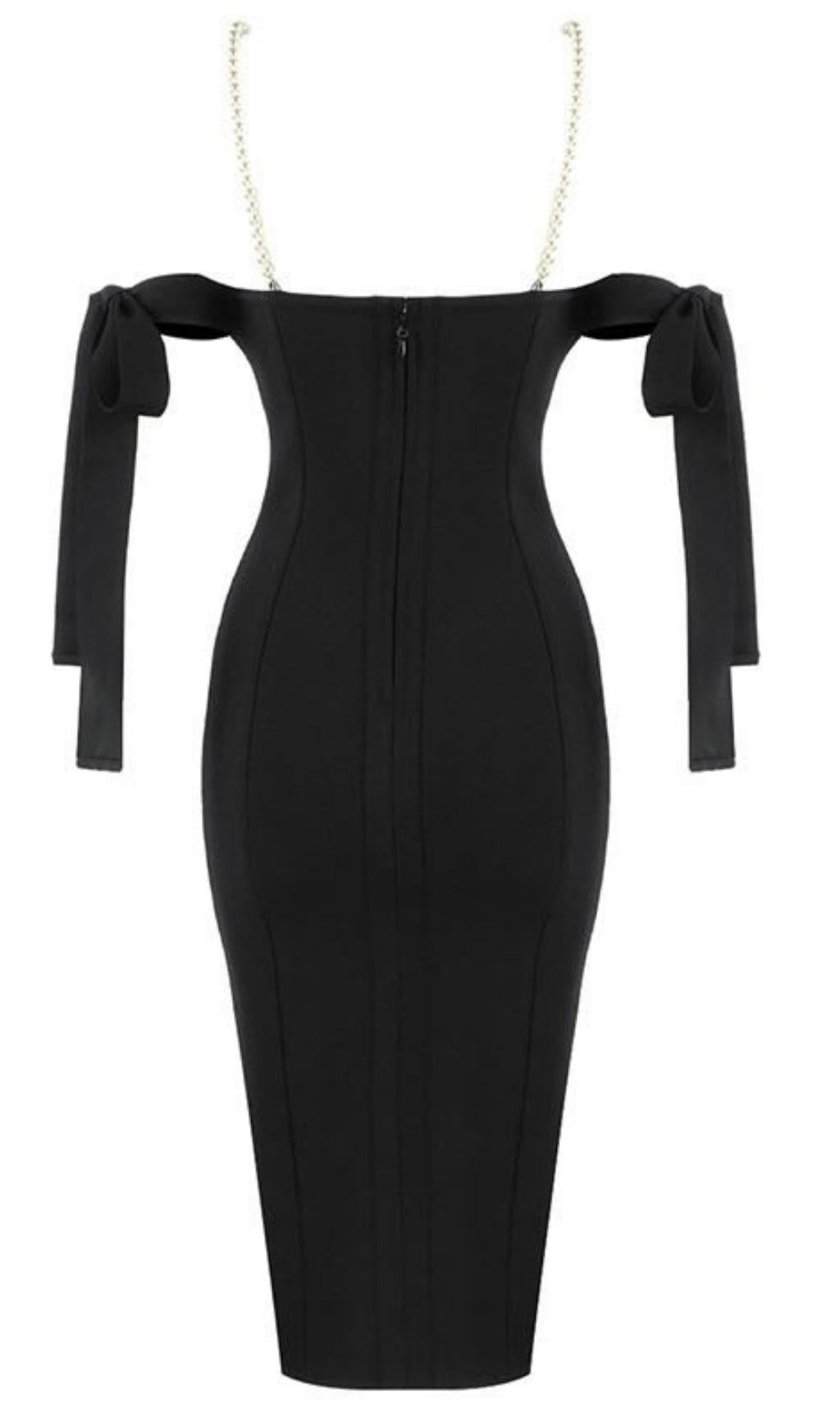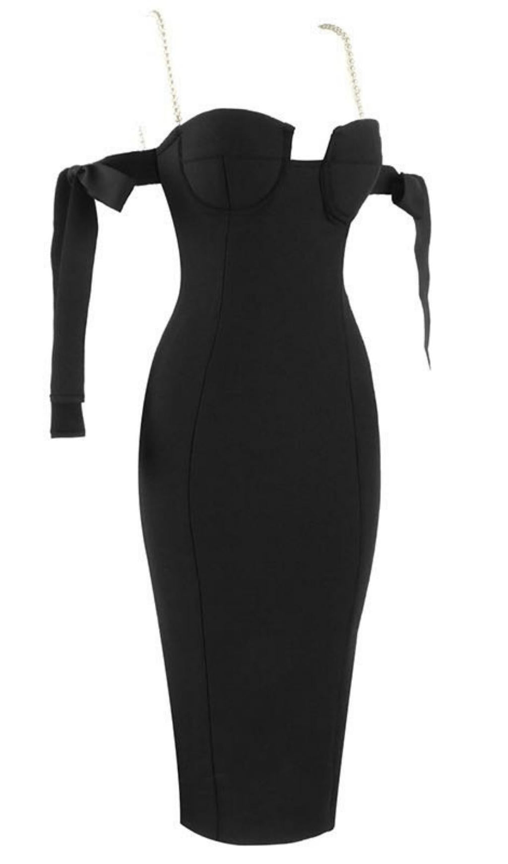 BLACK SHIRRED MIDI SUNDRESS