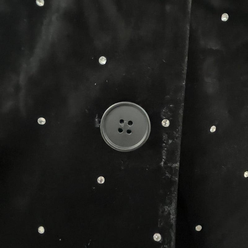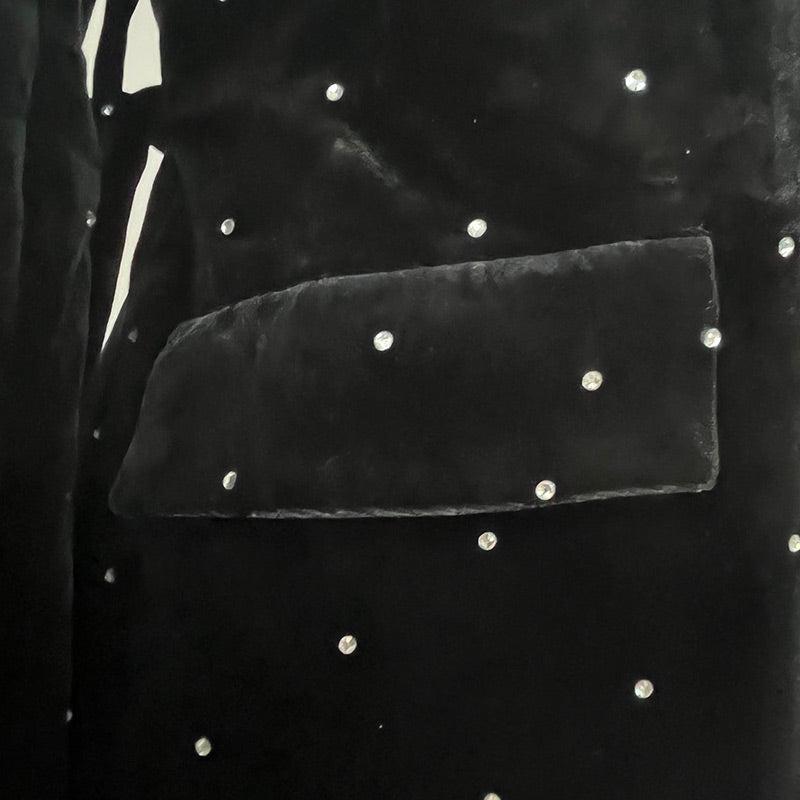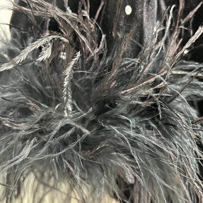 BLACK SINGLE BUTTON VELVET FEATHERS BLAZER