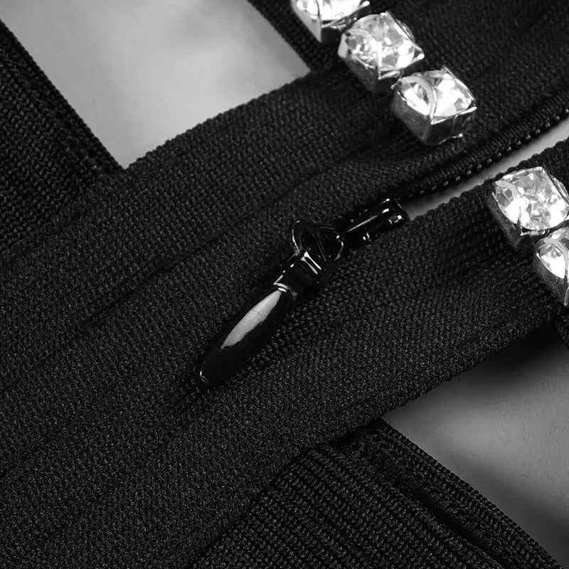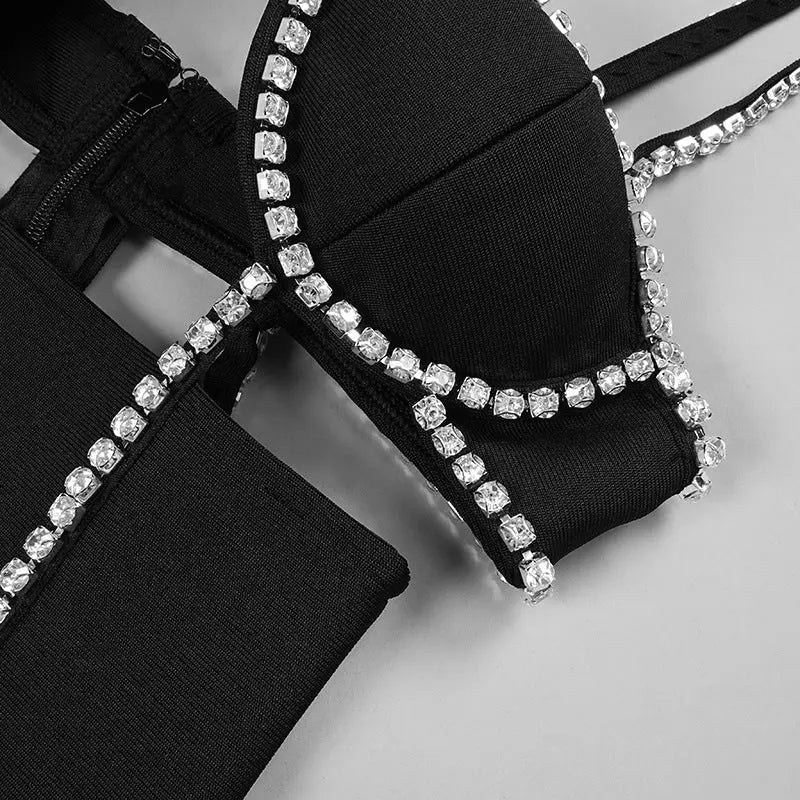 BLACK SPAGHETTI STRAP MINI BANDAGE DRESS
