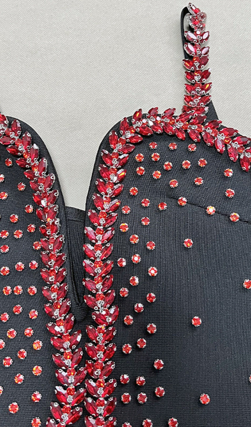 This dress boasts a sleek black base, delicate spaghetti straps, and striking red rhinestones that catch the light. The mermaid silhouette hugs curves beautifully, adding drama. It��s perfect as ��hoco dress inspo�� for homecoming, shines at ��holiday break dress to impress�� gatherings, or makes a statement at a ��celebrity event dress to impress�� occasion. Its glamorous design ensures you ��dress to impress�� effortlessly, fitting formal parties, galas, or special nights out.